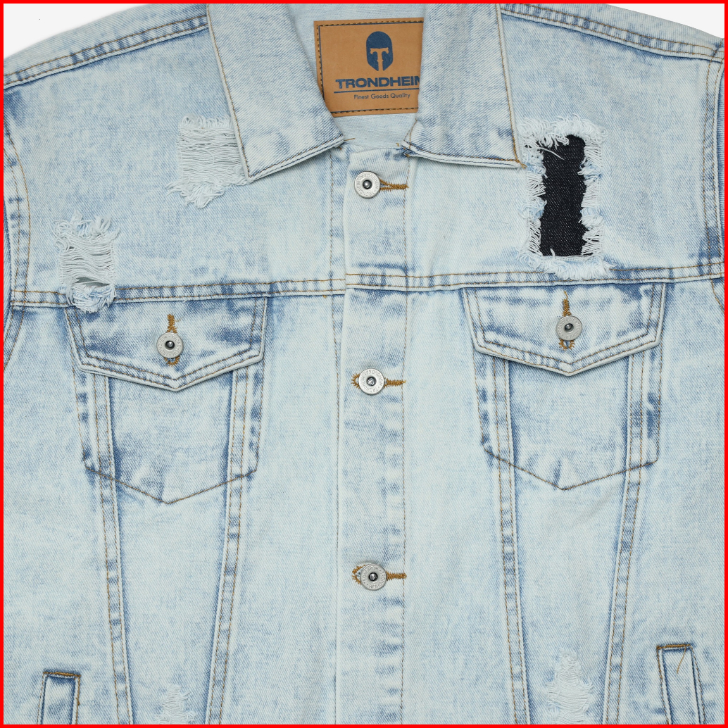 Trondheim Jaket Jeans Denim Sildur Ripped Bleach Sandwash