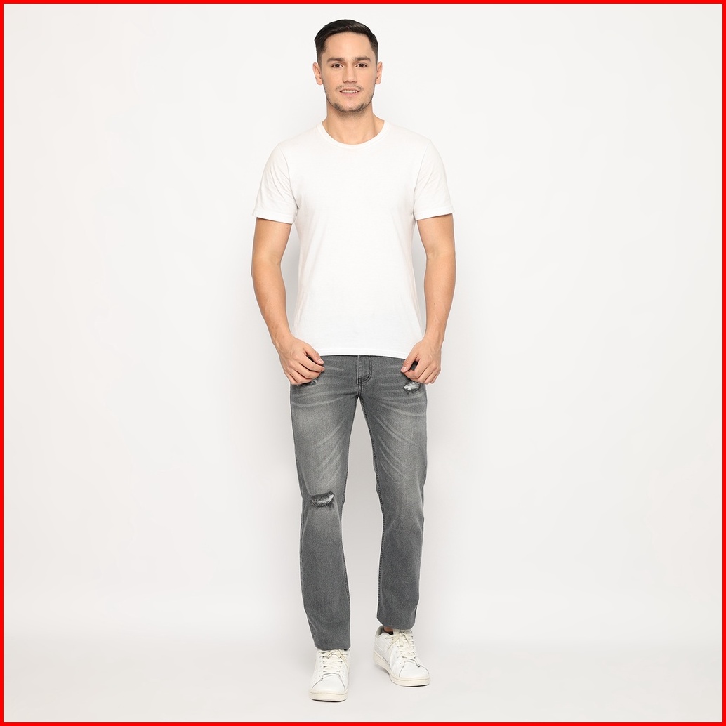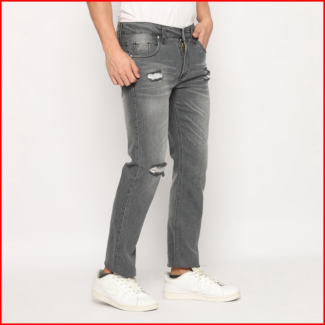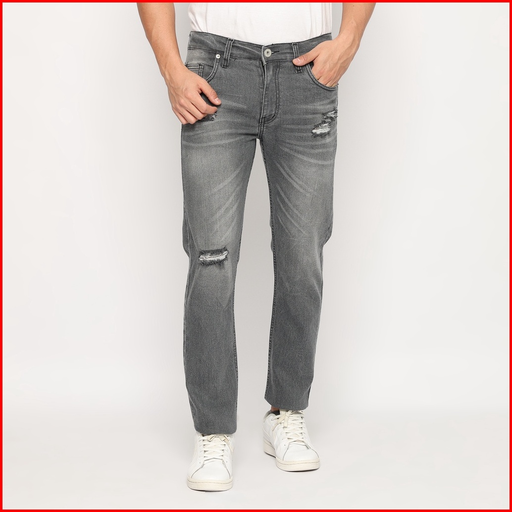Trondheim Celana Jeans Panjang Pria Denim Sobek Bonete Whisker Darkgrey