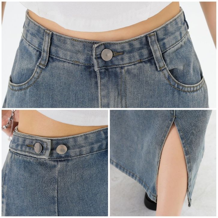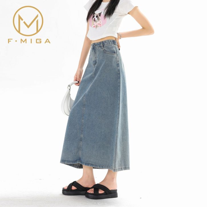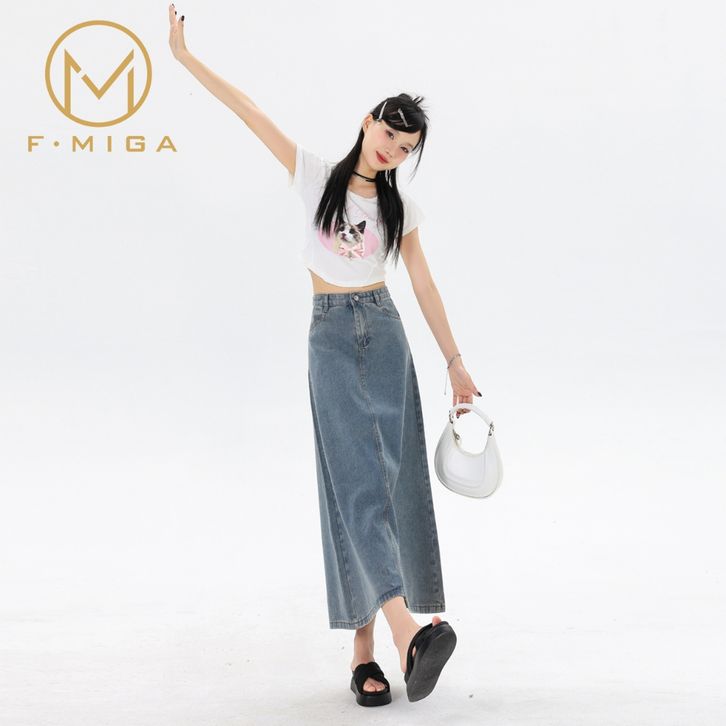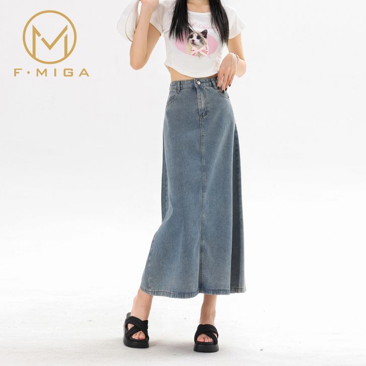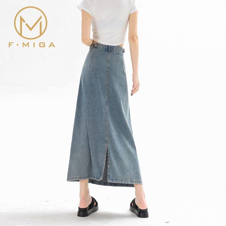 F MIGA C46 High Waist Denim Rok Jeans Midi Wanita Terbaru