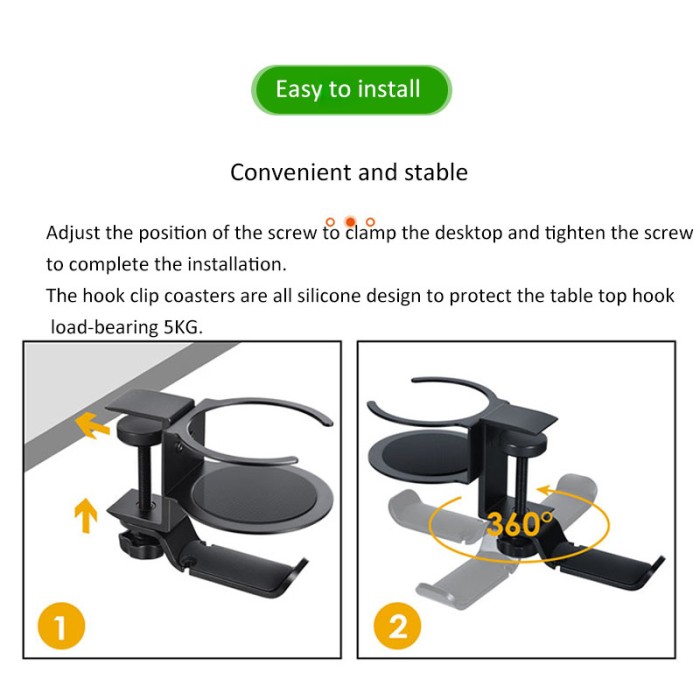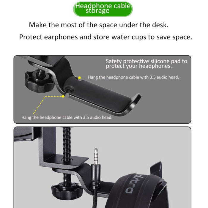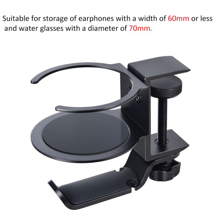 UNDER DESK HEADPHONE HANGER GLASS CUP GANTUNGAN HEADSET HOLDER PREMIUM - HITAM