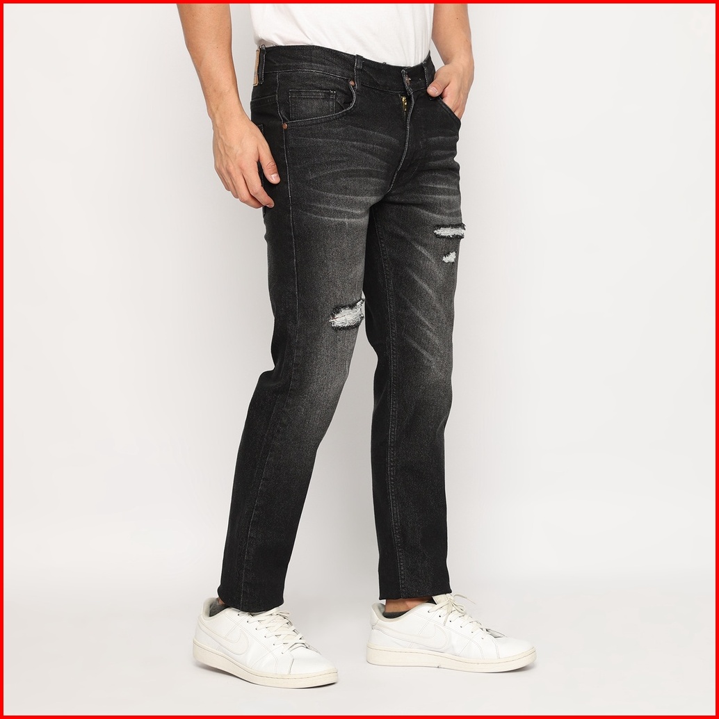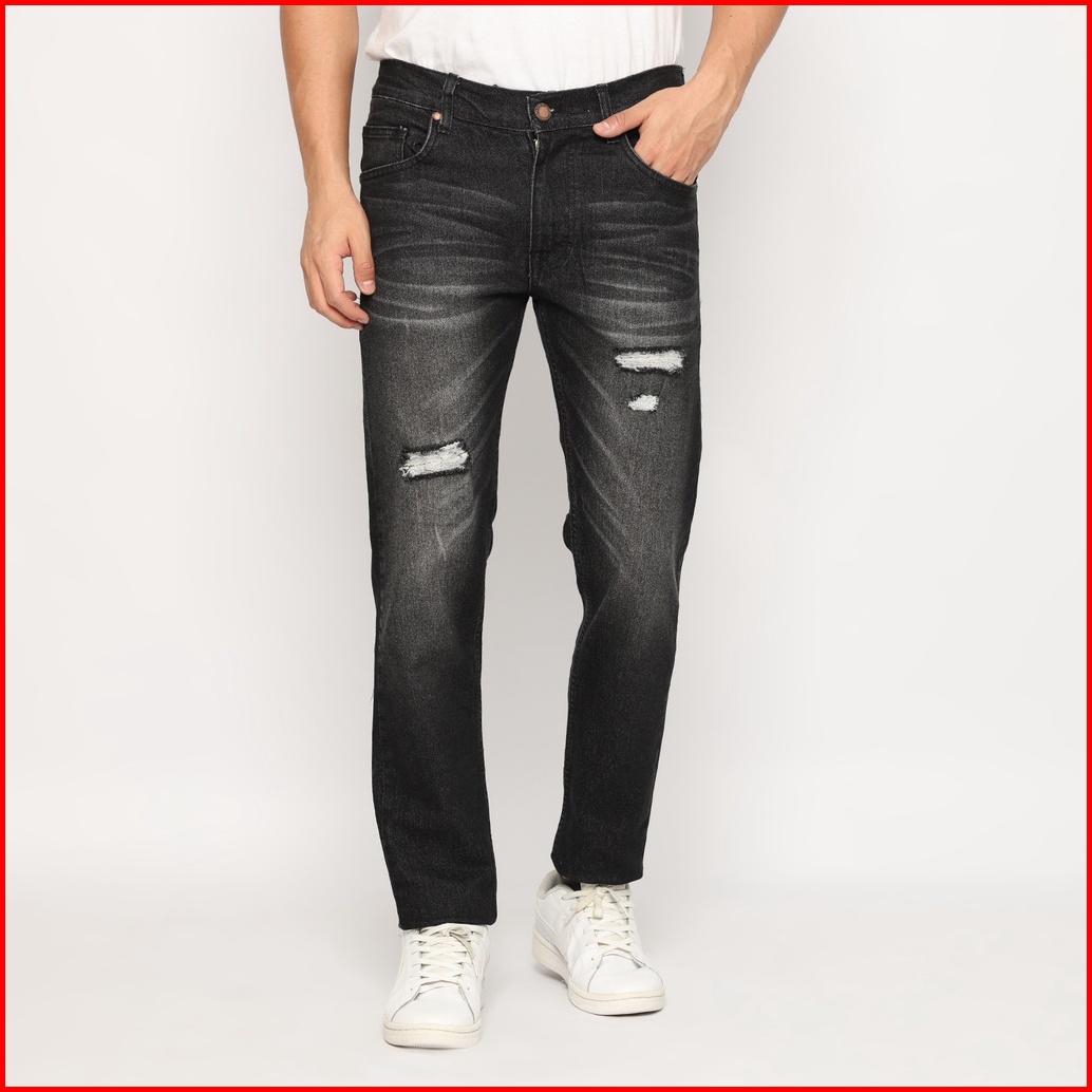 Trondheim Celana Jeans Panjang Pria Sobek Wout Whisker Blackjazz
