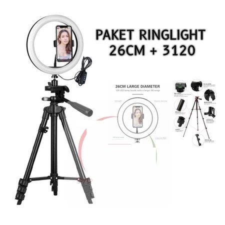 Ringlight 26cm + Tripod 3120 Selfie Make Up Live Vlog Lampu