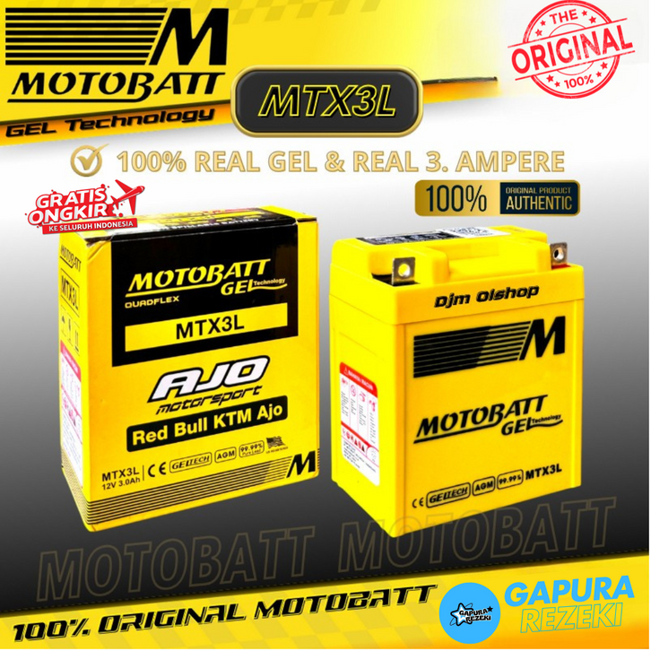 [FREE ONGKIR] Aki Motor Motobatt MTX3L 12V RX KING Ninja Satria 2Tak NSR 150 CBR Sonic Vario ZX KTM FU GSR GSX Original
