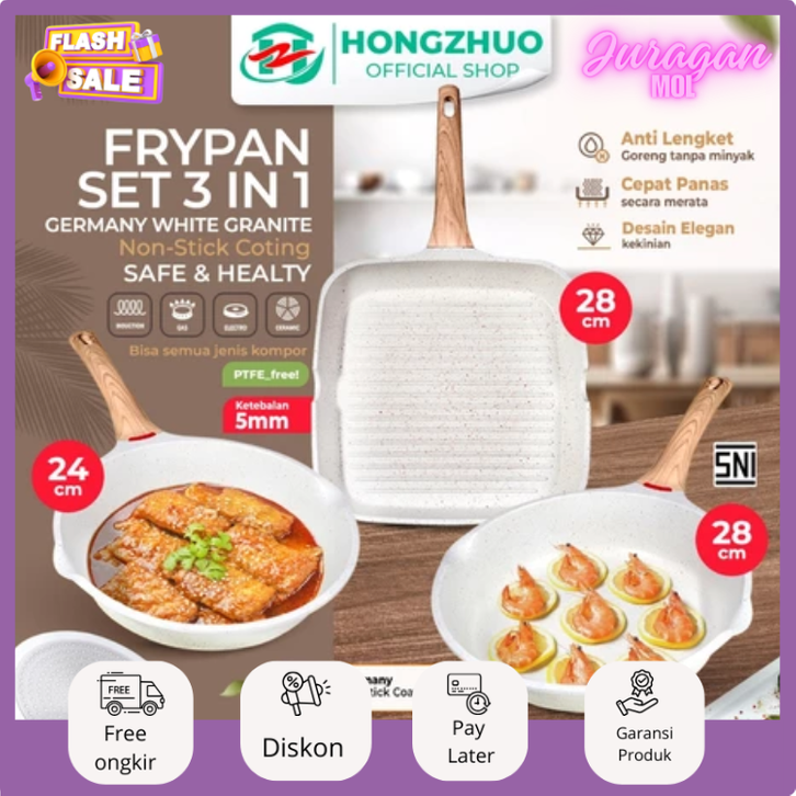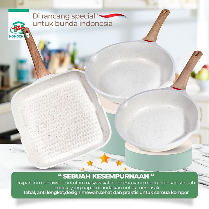 Tifale by Hongzhuo Granit Putih Anti lengket Peralatan Masak Dapur Untuk Semua Kompor Panci Wajan Penggorengan Grillpan