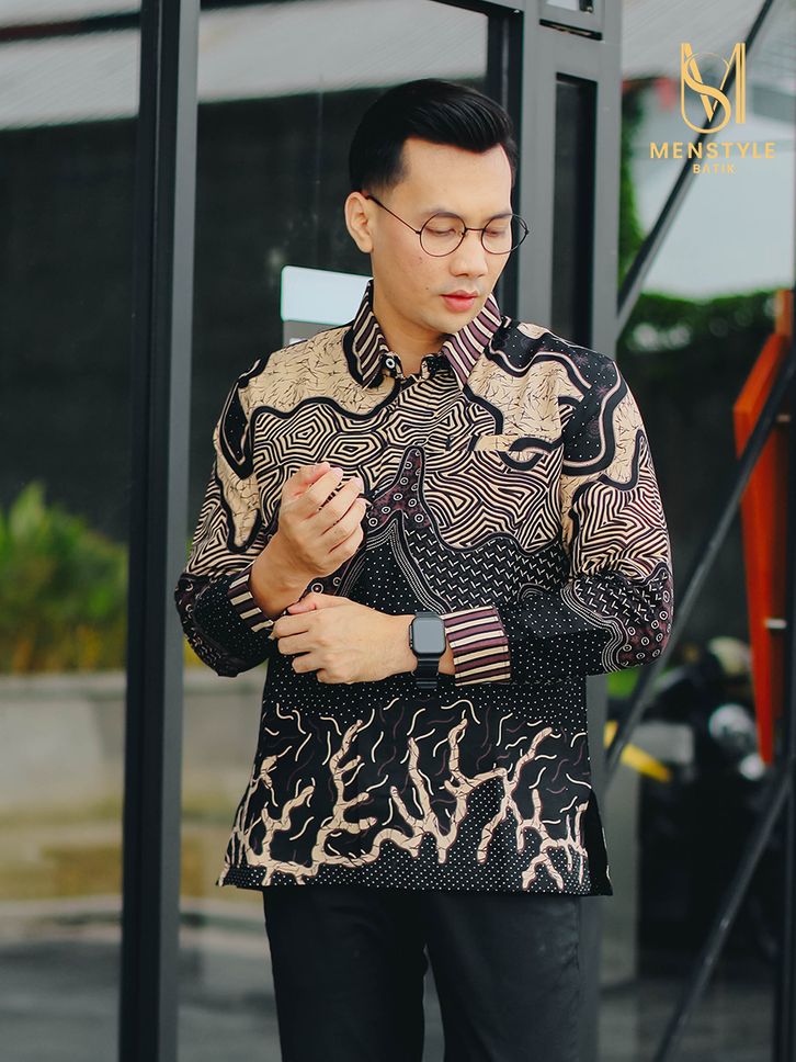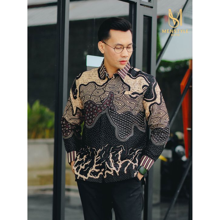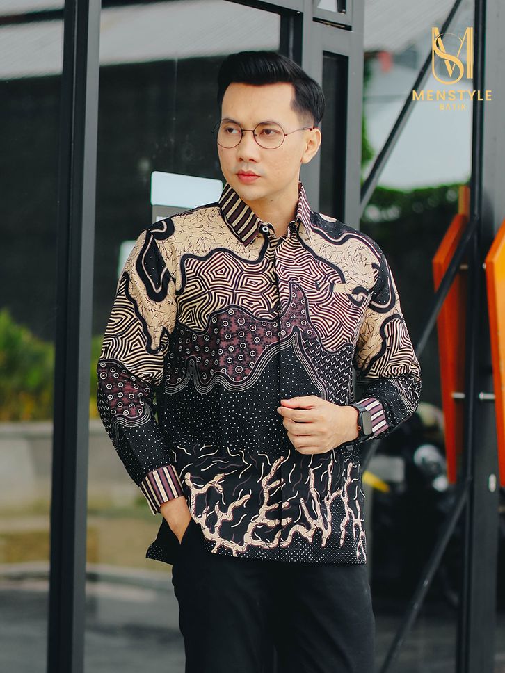 BATIK PRIA KEMEJA SLIMFIT LAKESWARA MOTIF AKAR PILIN LENGAN PANJANG MENSTYLE BATIK