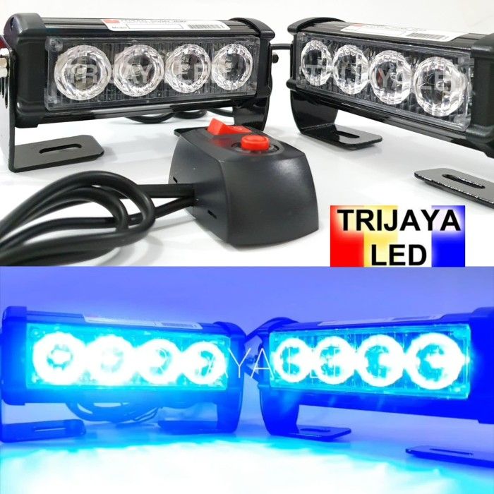 Lampu Led Motor Lampu LED STROBO Biru Vama Federal Signal BLITZ 4 Mata Motor Mobil