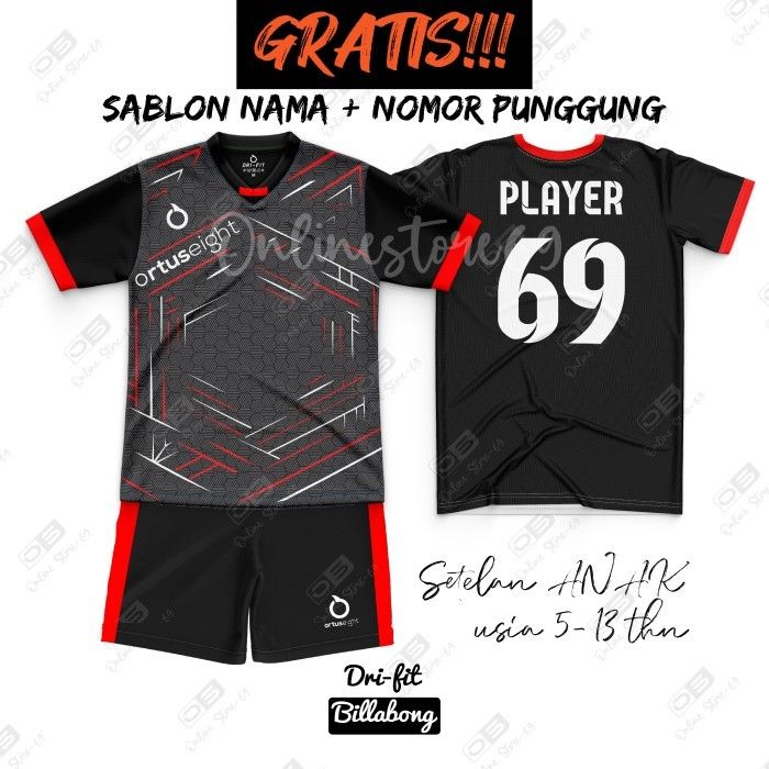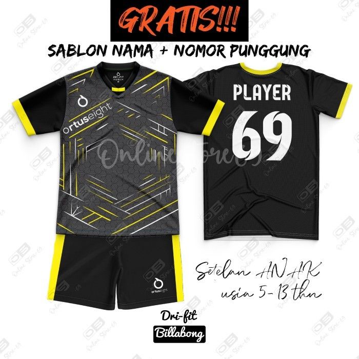 CUSTOM NAMA + NOMOR PUNGGUNG BAJU FUTSAL ANAK /KAOS BOLA ANAK-ANAK - Hitam M