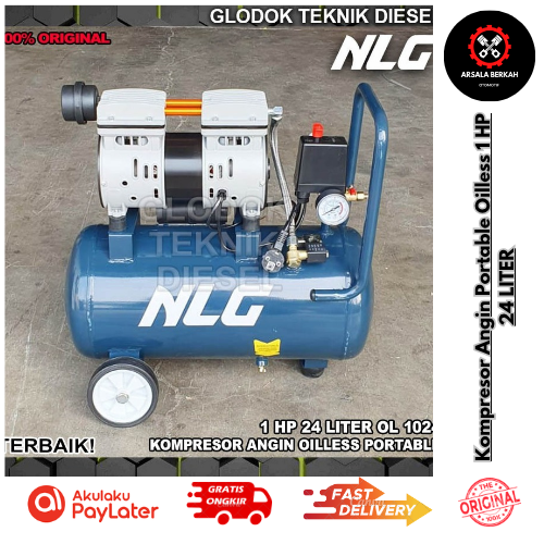 NLG Kompresor Angin Portable Oilless 1 HP 24 LITER Mini Air Compressor Udara OL OA 1024 OL1024 ARTIX Oilless 1.25 HP 30