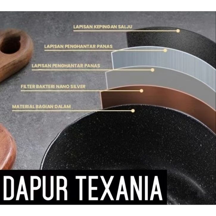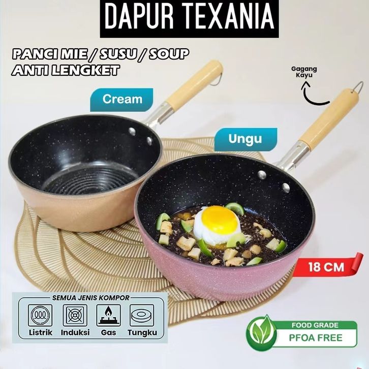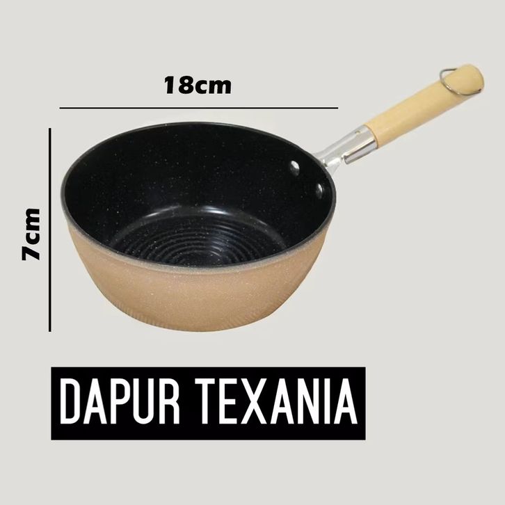 Panci Susu Marble Gagang Kayu Anti lengket Panci Mie Milk Pot Sauce Pan Size 18 cm Food Grade Desain Warna Cantik