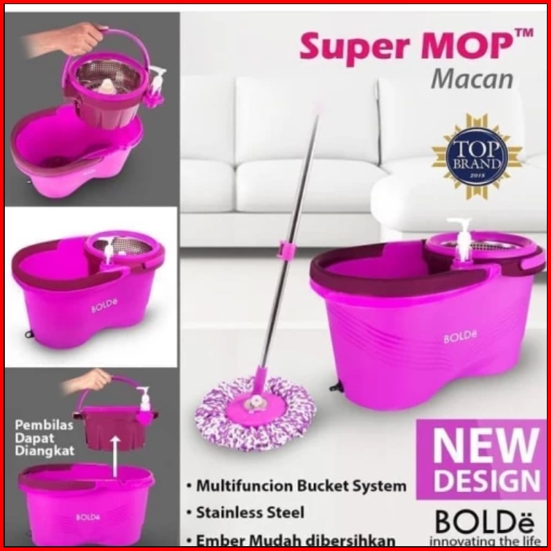 Alat Pel Lantai Super Mop Bolde Macan Saringan Pengering Bisa Dilepas