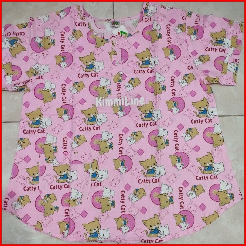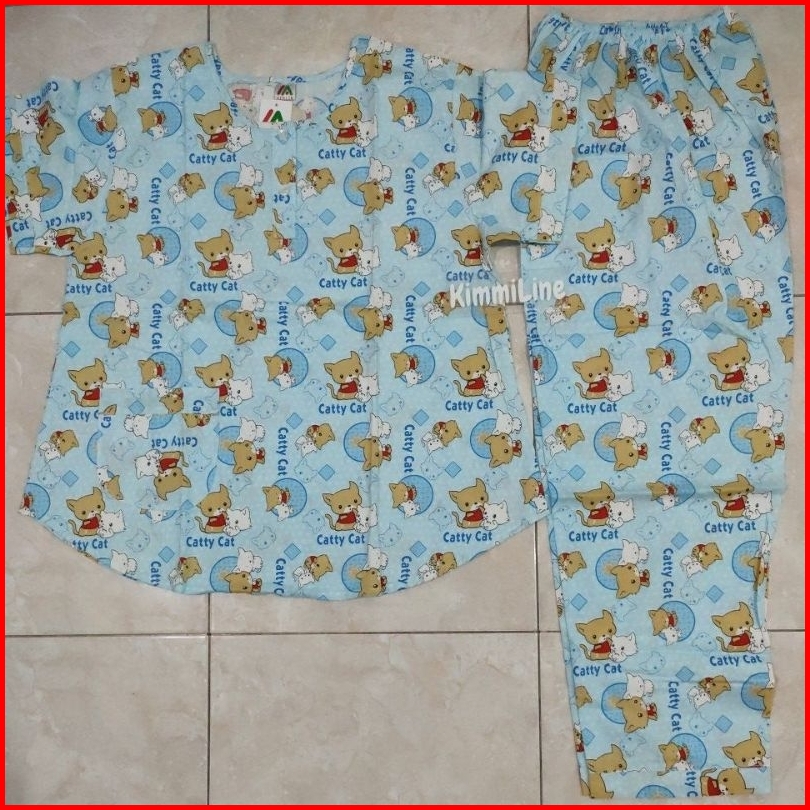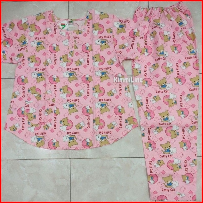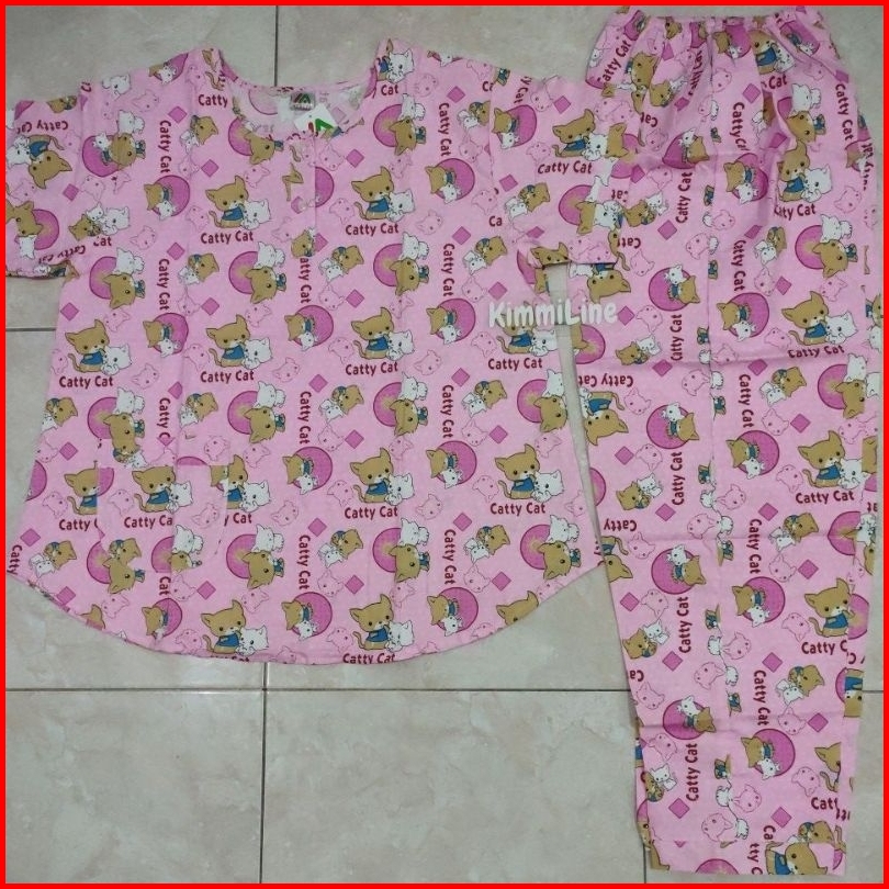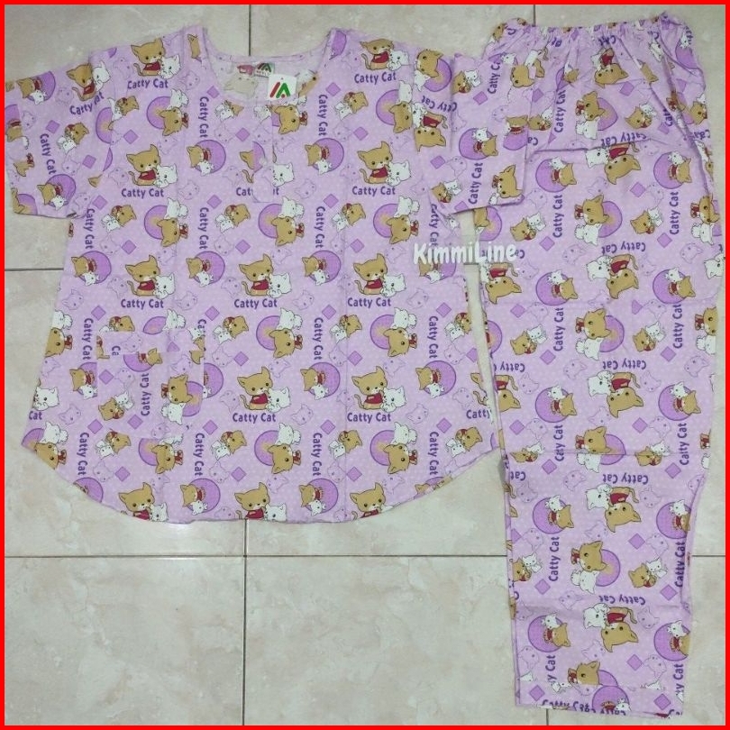Setelan Piama Baju Tidur Bahan Katun Merlin Cp Dewasa Celana Panjang Tangan Pendek Motif Cute Catty Cat