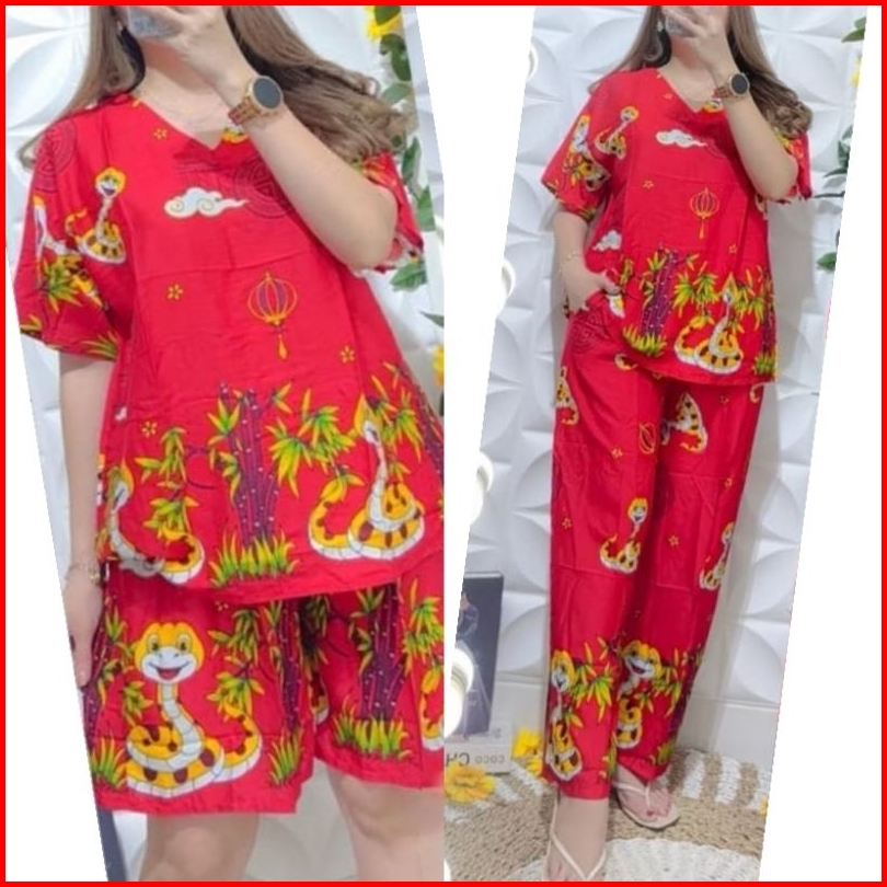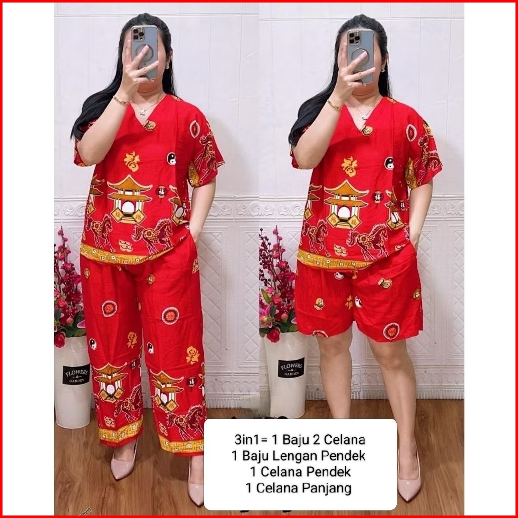 Jumbo 3in1 Ld120 Baju Tidur Piyama Rayon Imlek Shio Kuda Horse 2026