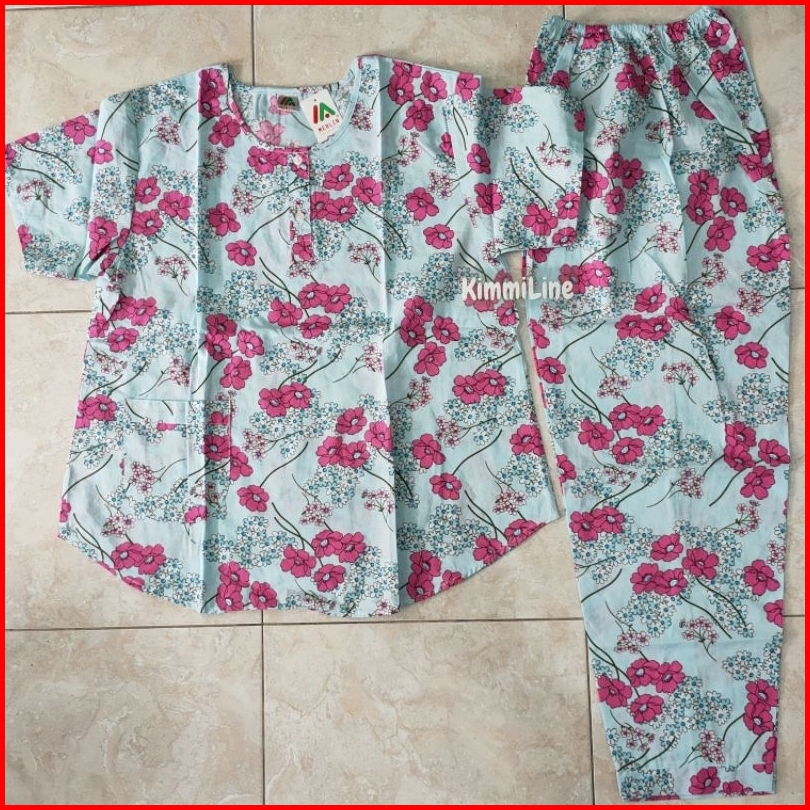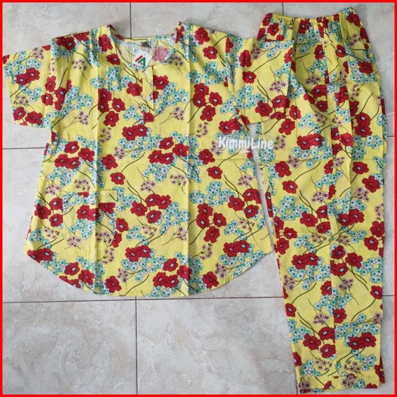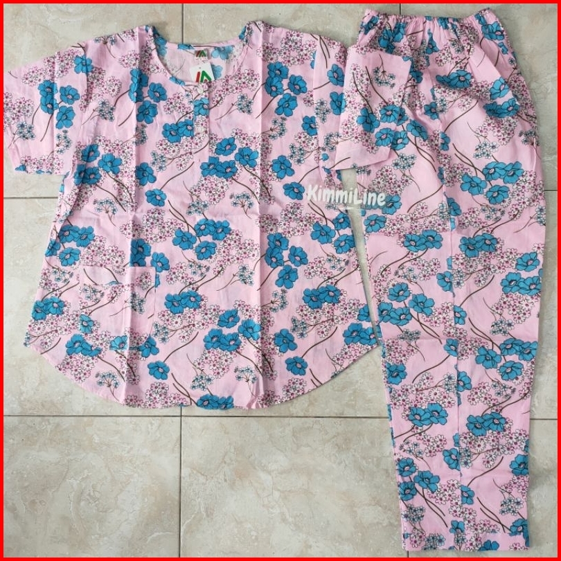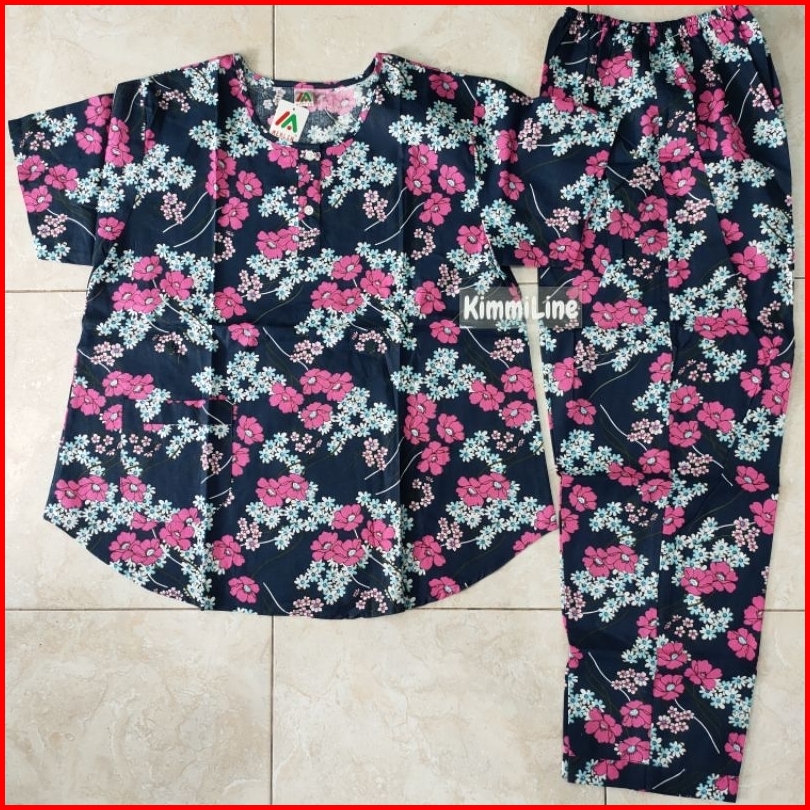 Baju Tidur Merlin Bahan Katun 2 Corak Motif Setelan Celana Panjang Tangan Pendek Kancing 5 Cp Size Dewasa Motif Flower