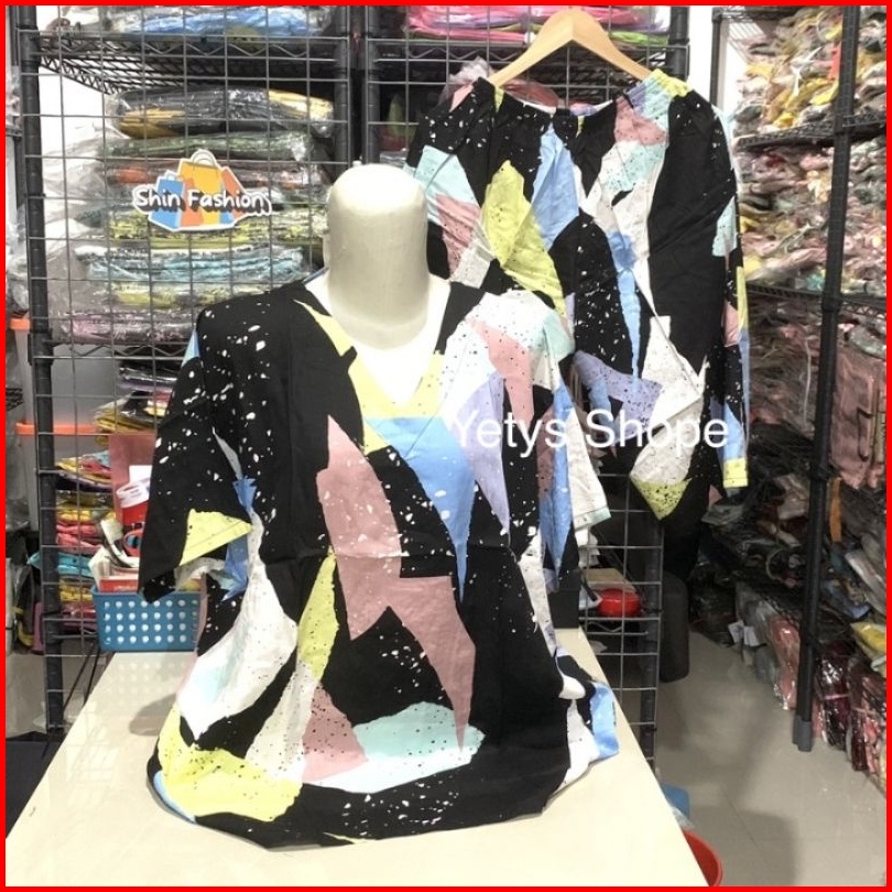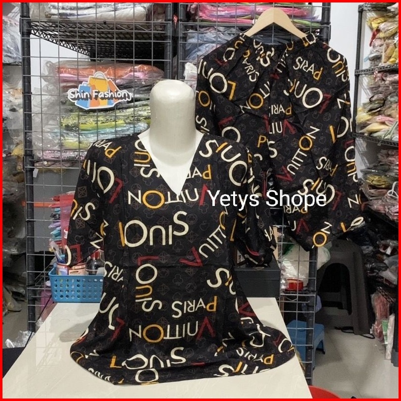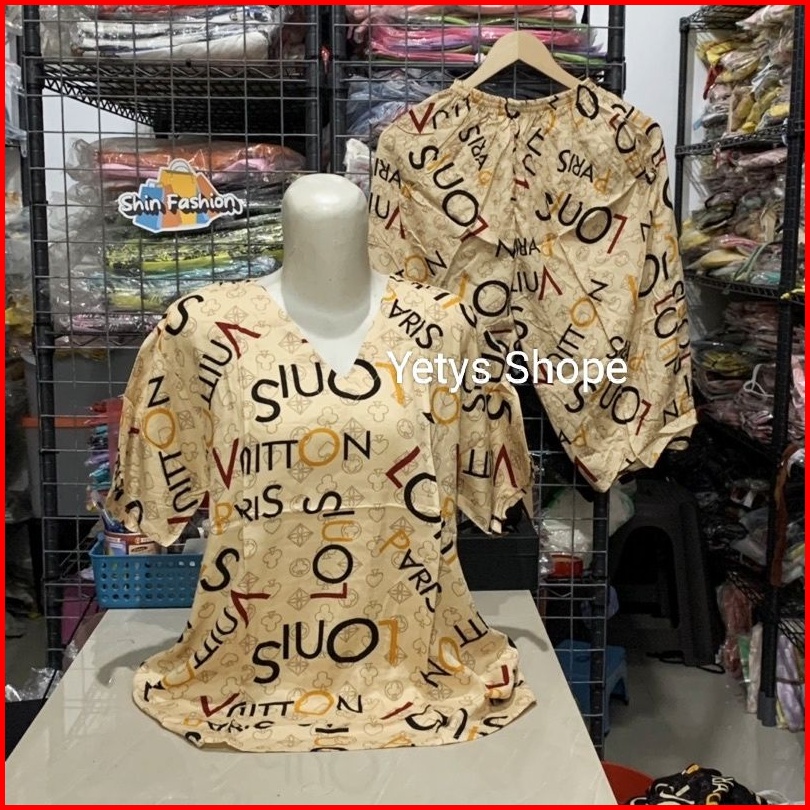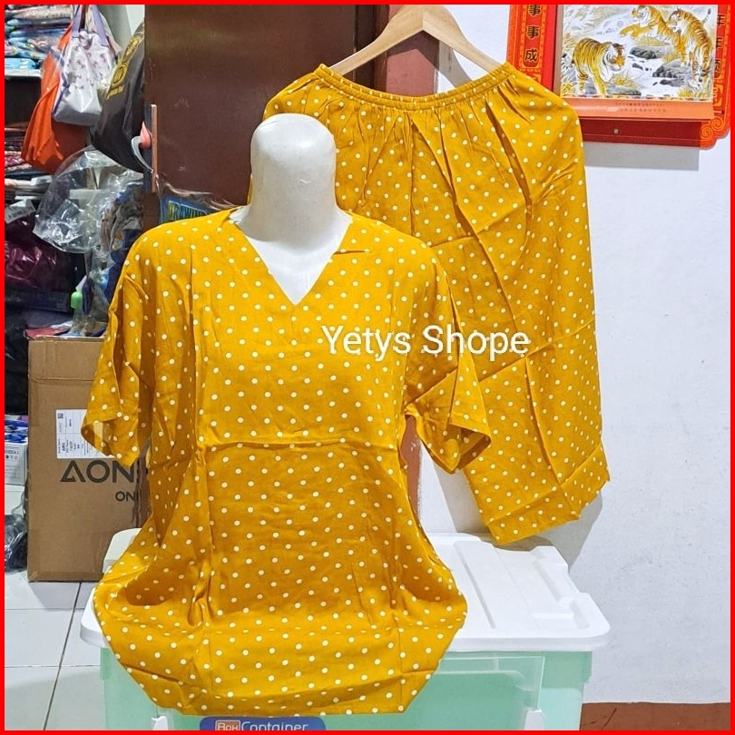Ld100 Leher V Baju Tidur Piyama Lengan Pendek Celana 3 4