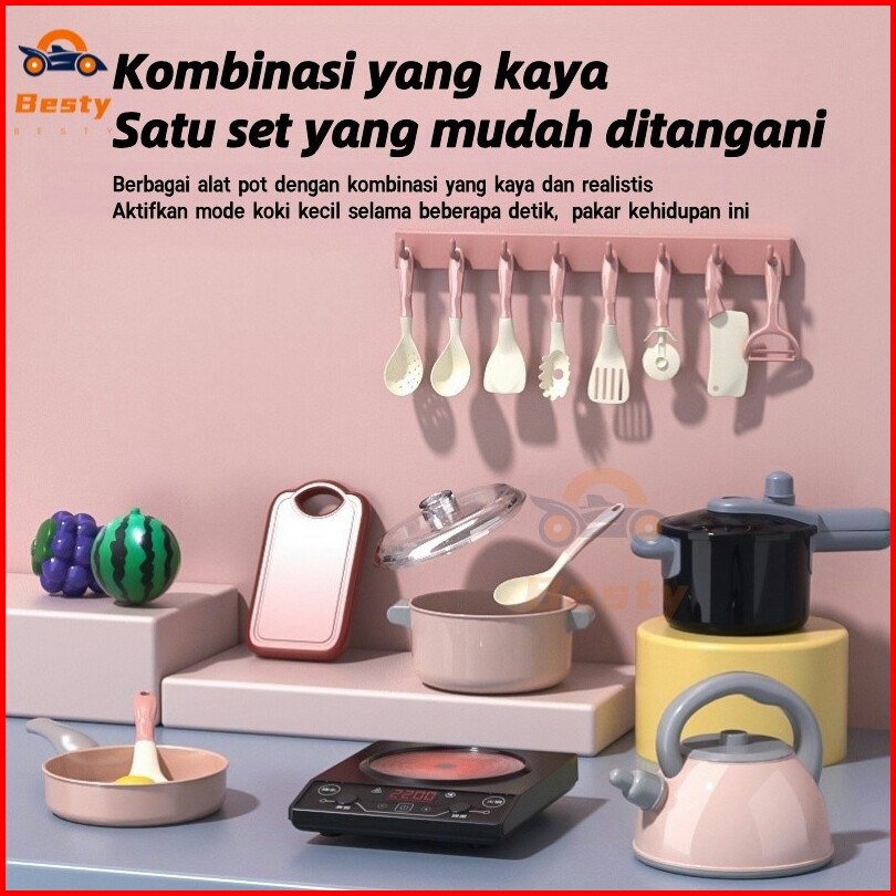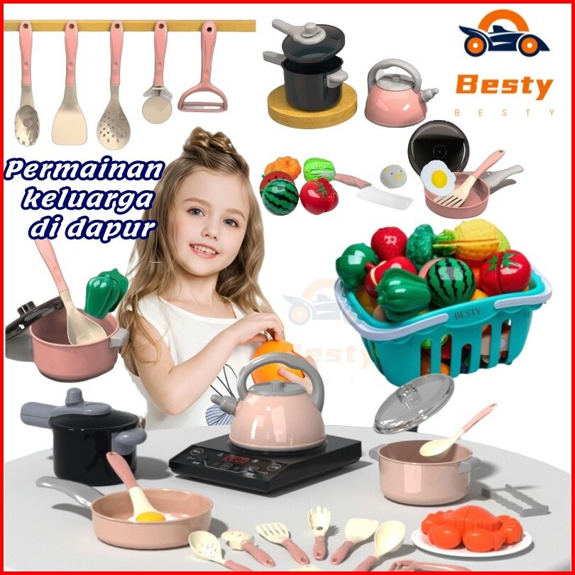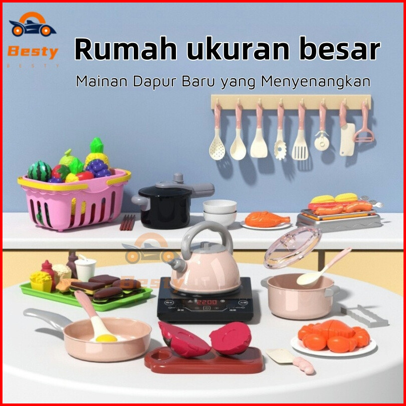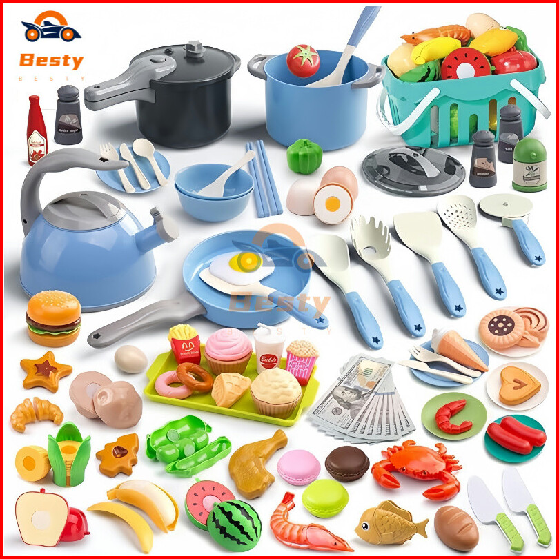Besty 86pcs Mainan Dapur Simulasi Mainan Memasak Dapur Mainan Buah Potong Dapur Mainan Pendidikan Anak Memotong Sayuran