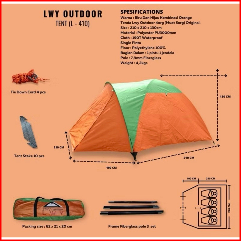 Tenda Camping Kapasitas 4 Orang Lwy Outdoor -tenda 4p - Tenda Camping Murah - Tenda 4p Double Layer