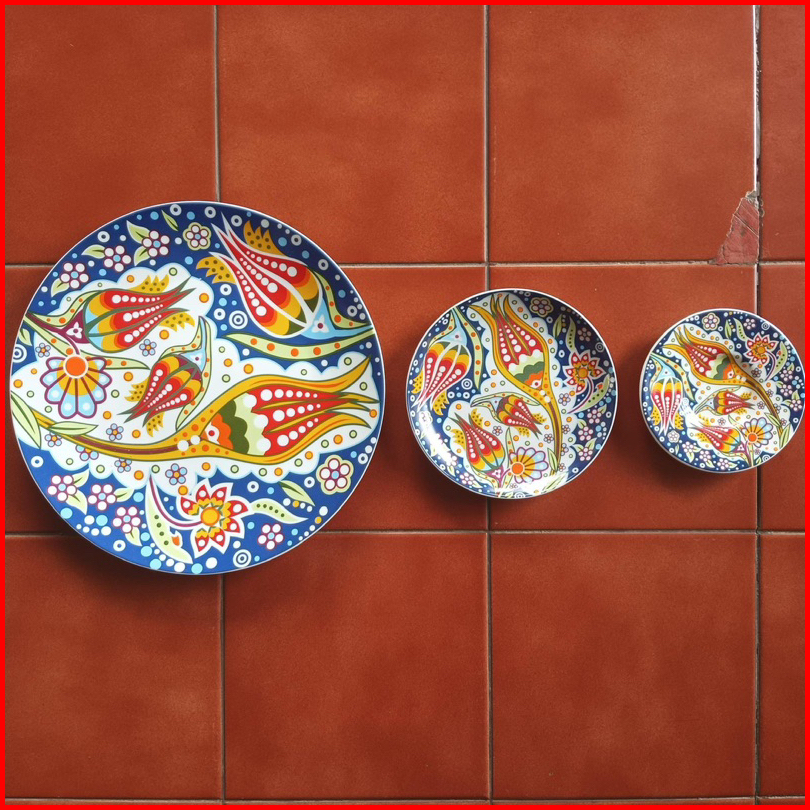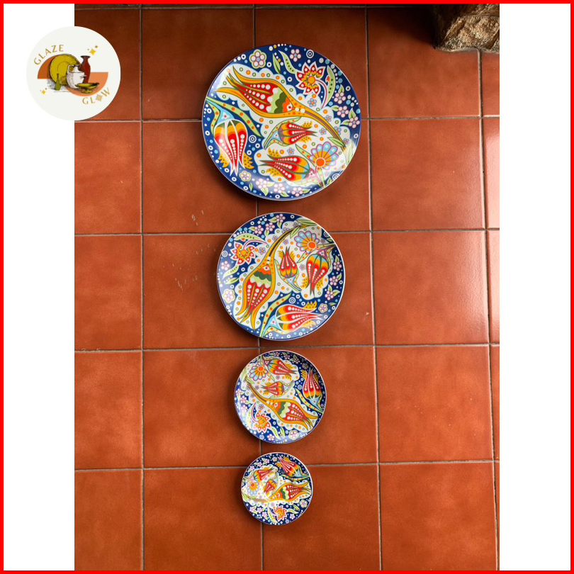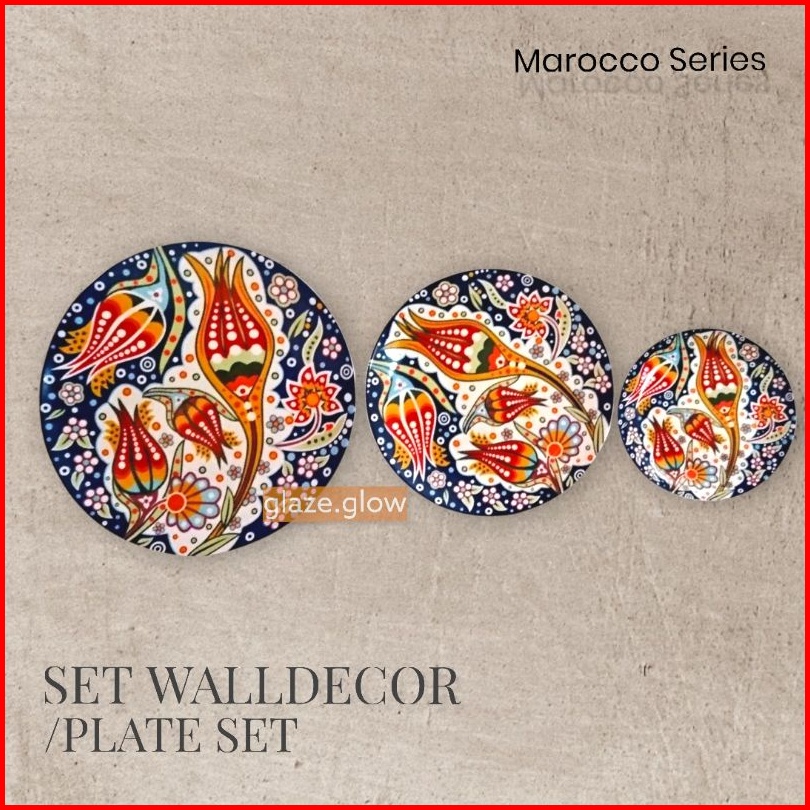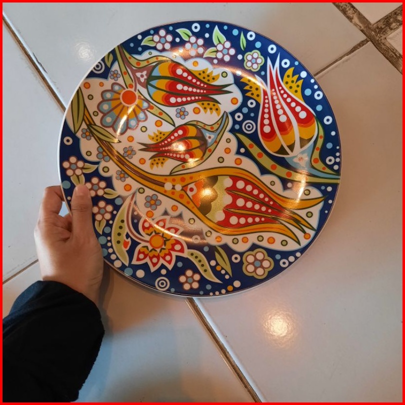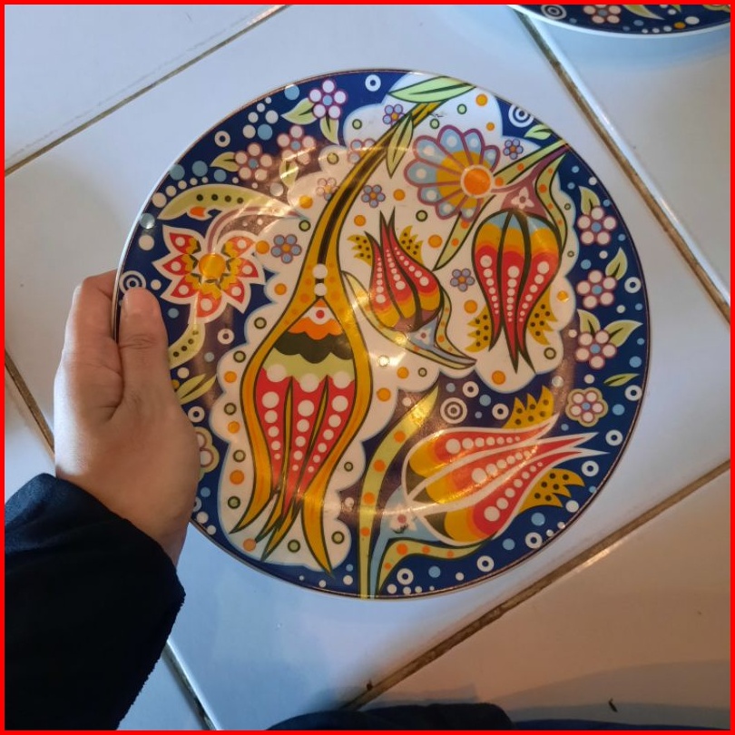 Eceran Piring Keramik Makan Piring Keramik Hias Walldecor Dinding Motif Maroko Tulipe Navy