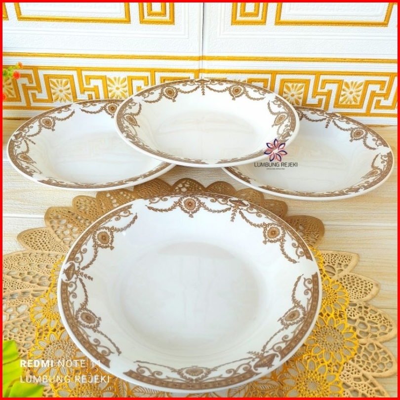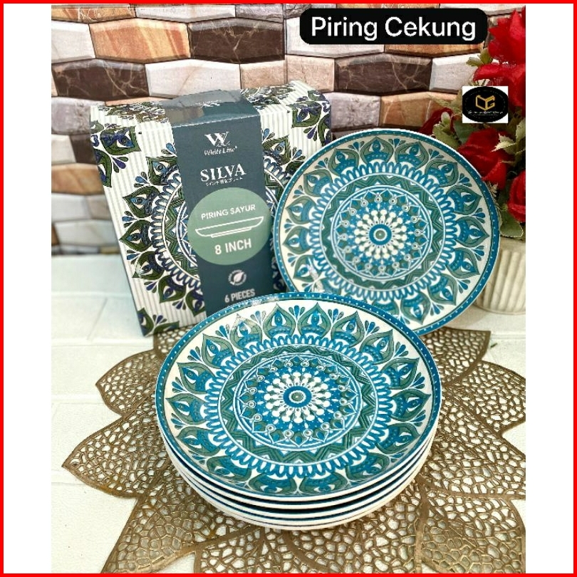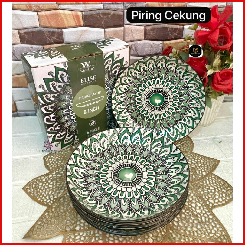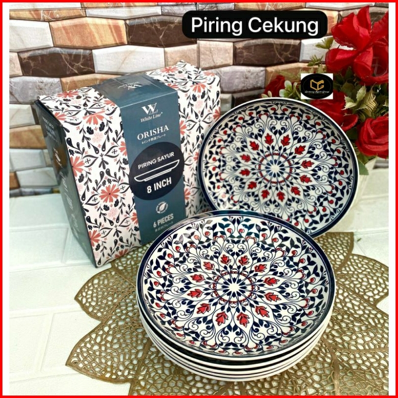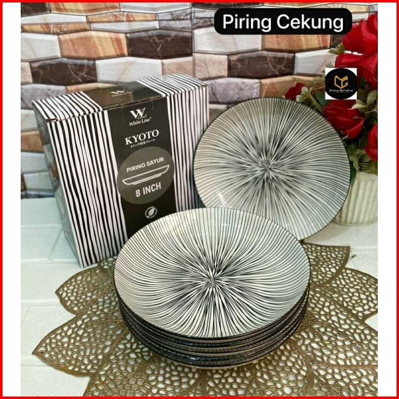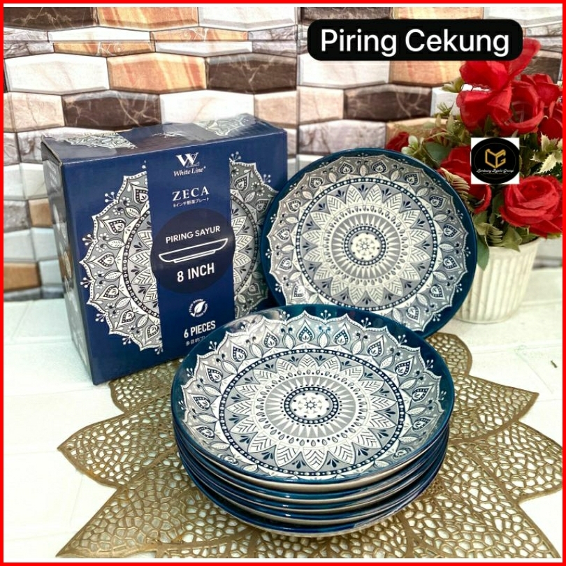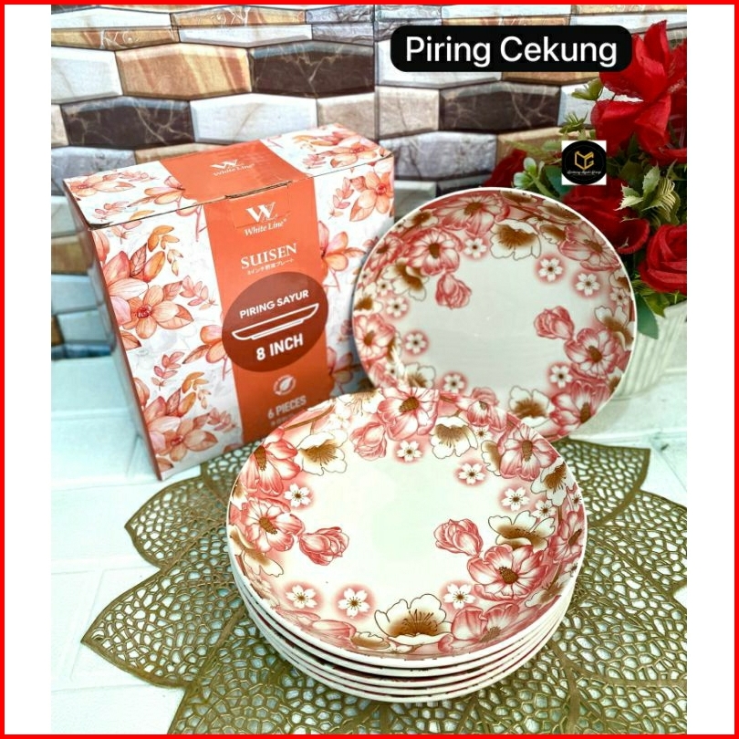 6pcs Piring Cekung Keramik 8 Inch Motif Jepang Etnik Elegan Tebal Cocok Untuk Sayur Makanan Berkuah 1box Piring Makan Ke