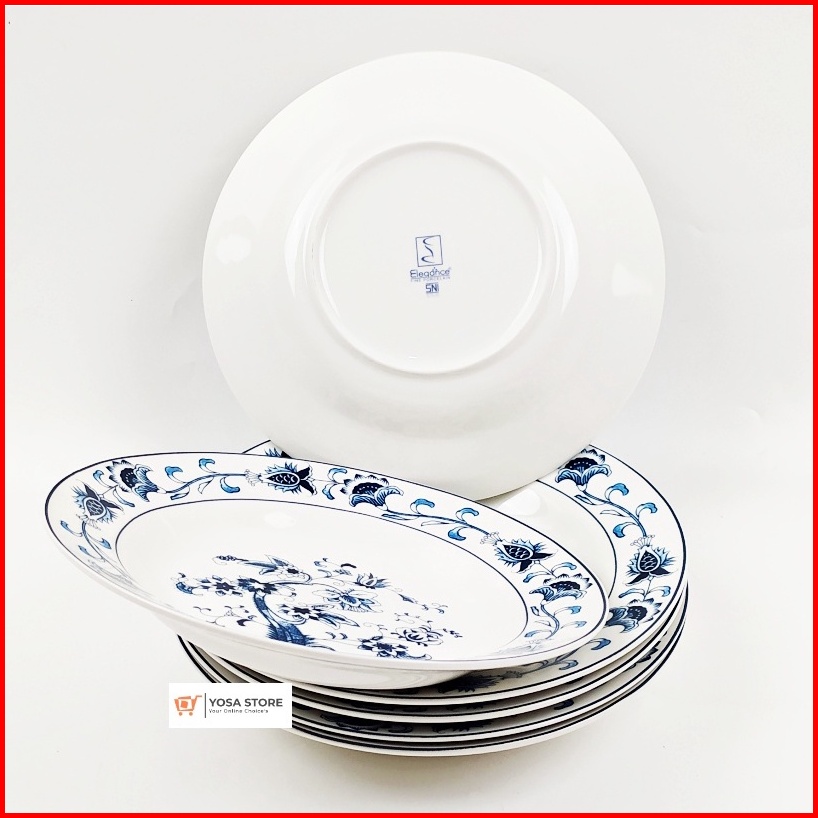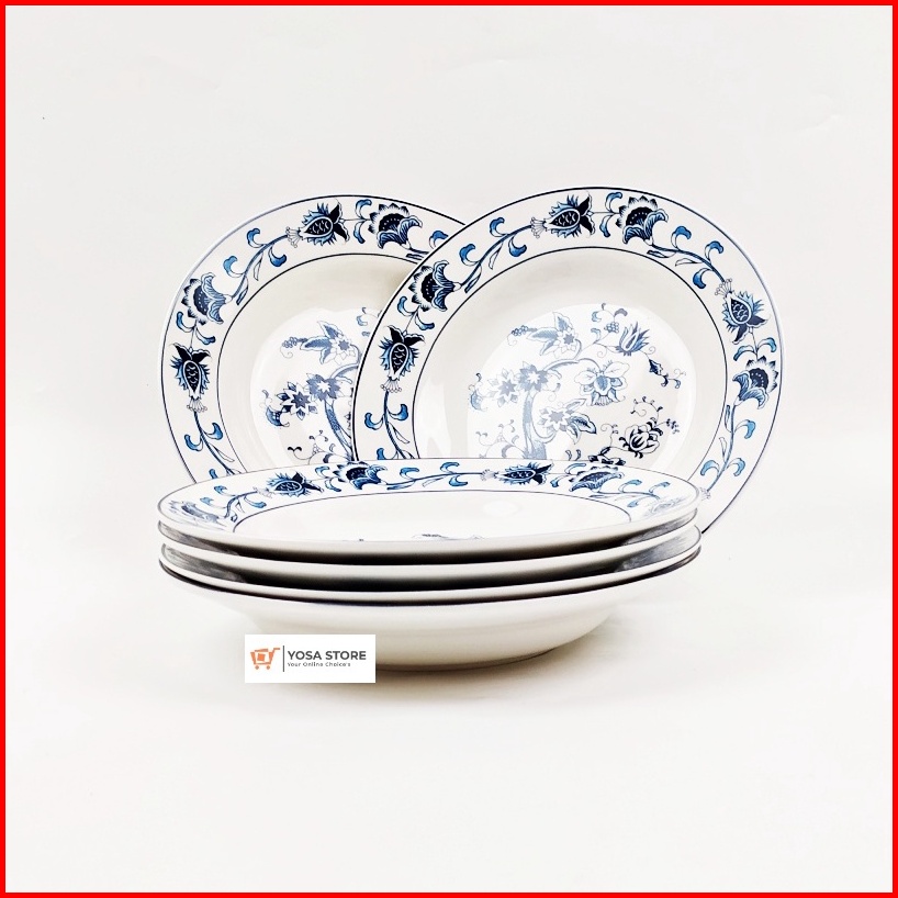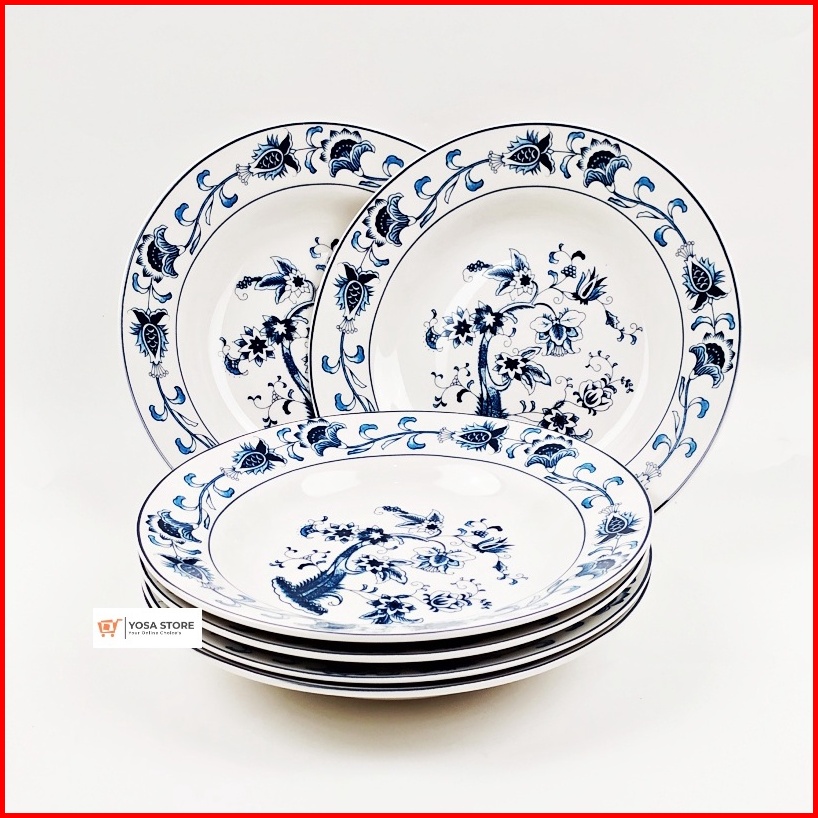 Piring Makan Cekung Keramik Tebal Motif Ming Classic 9inch - 6 Pcs