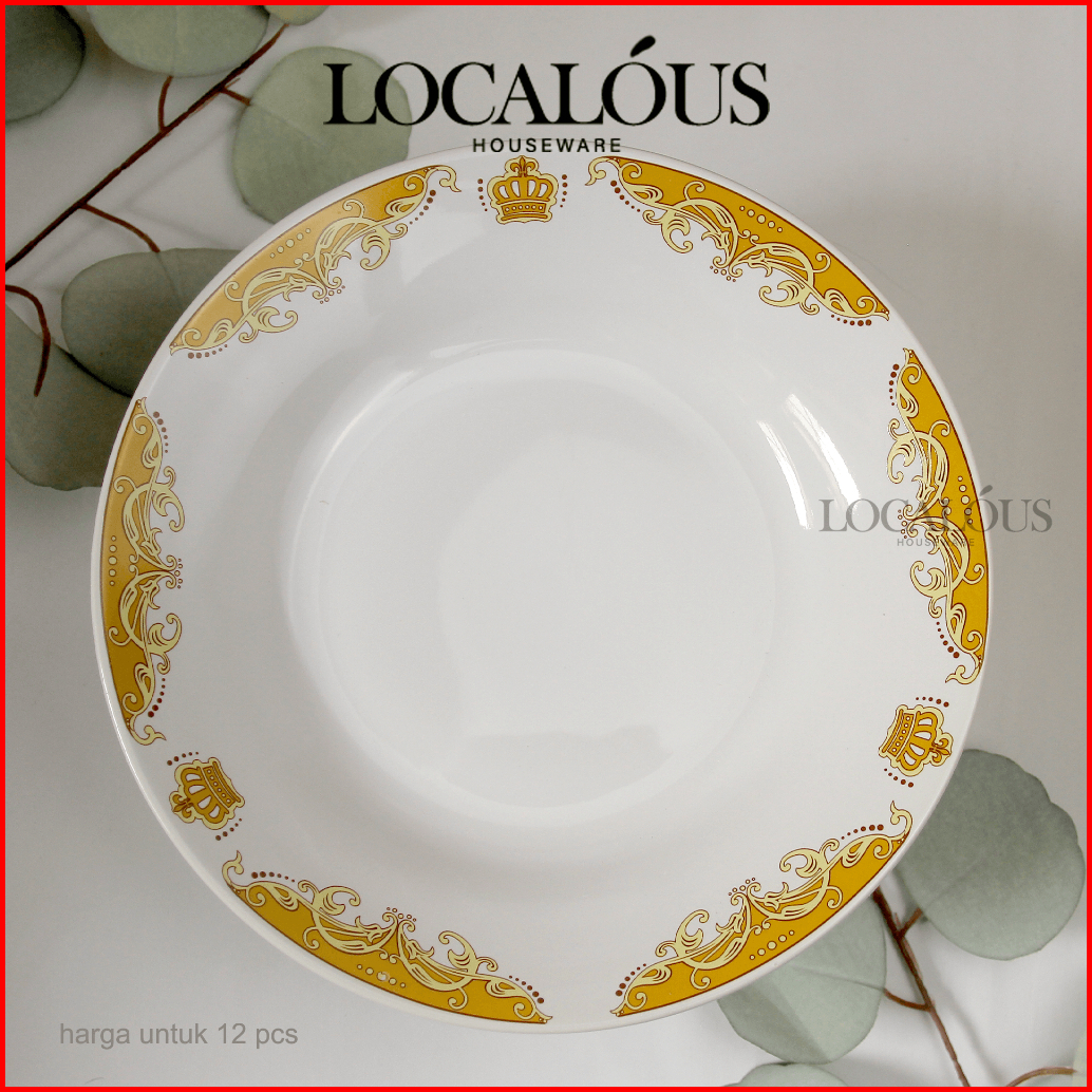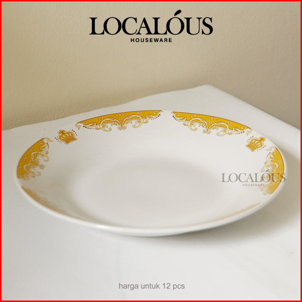 1 Lusin Piring Makan Keramik Lucky Omega Motif Mahkota Piring Cekung 9inch 22.5cm Sunbird Ds06