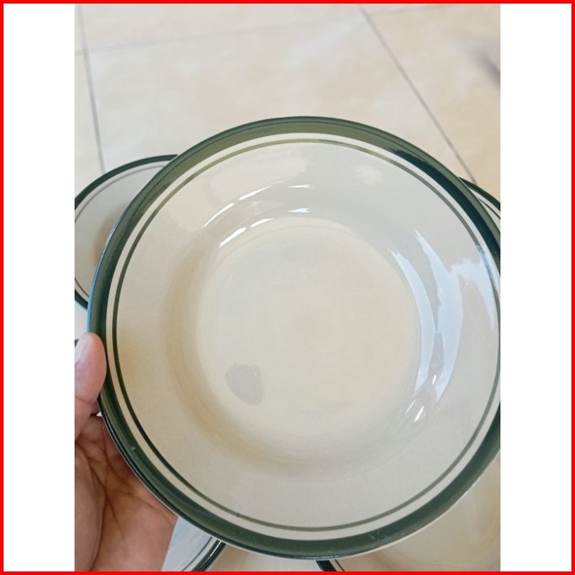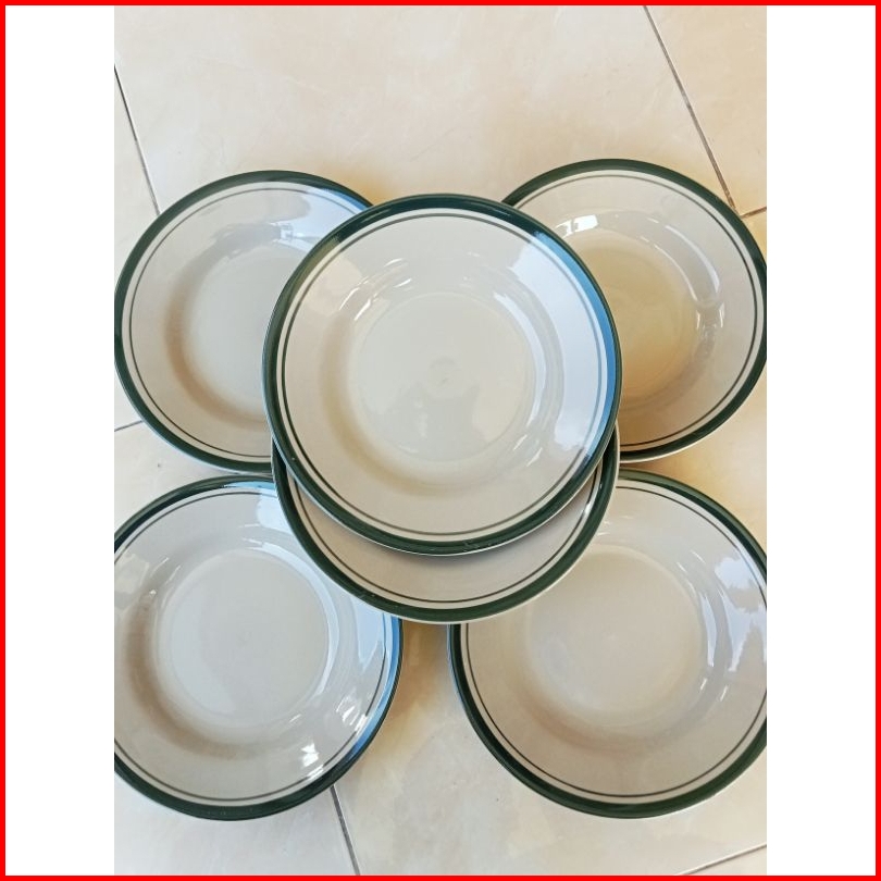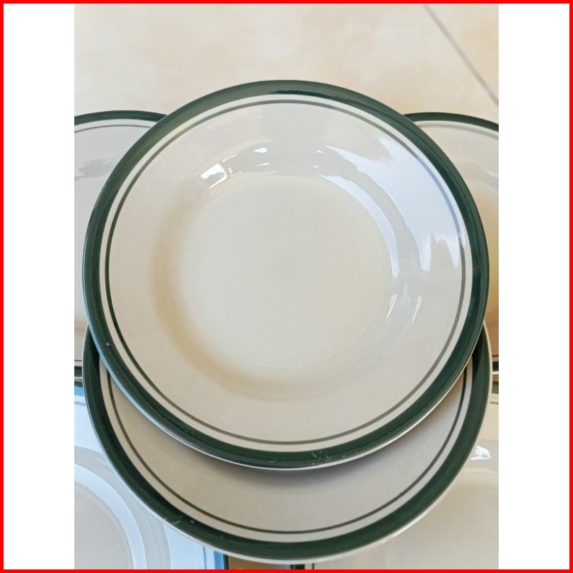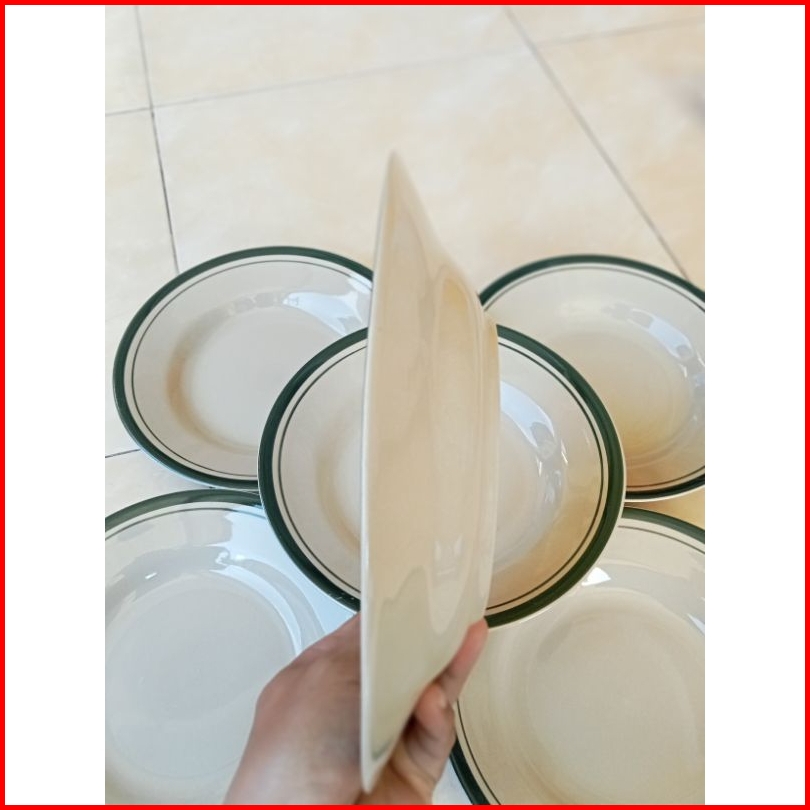 6pcs Piring Keramik List Hijau Piring Makan 21.5cm 8inch Piring Makan Lucky