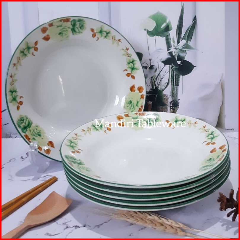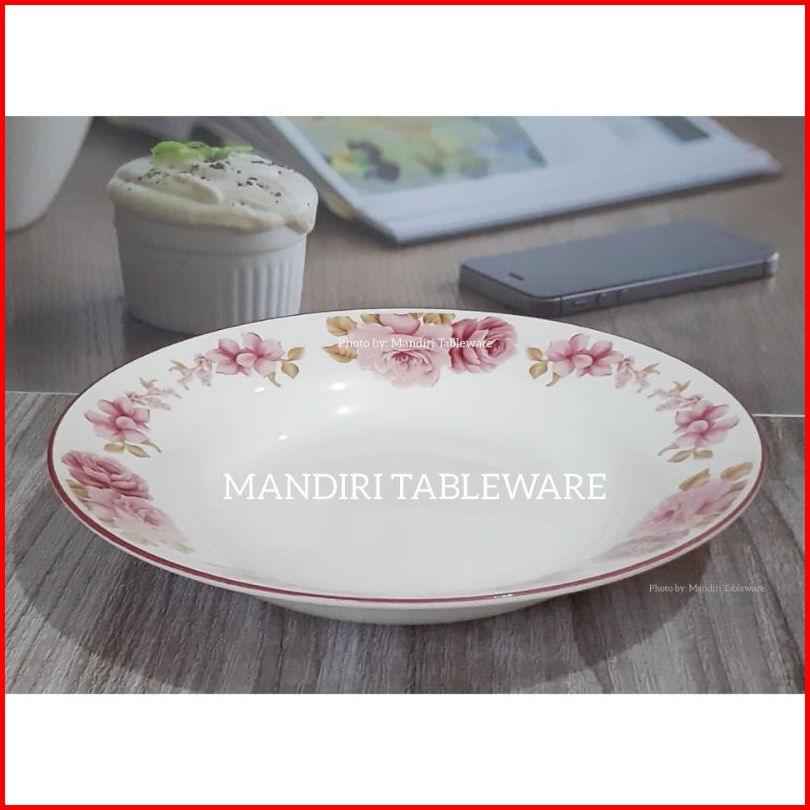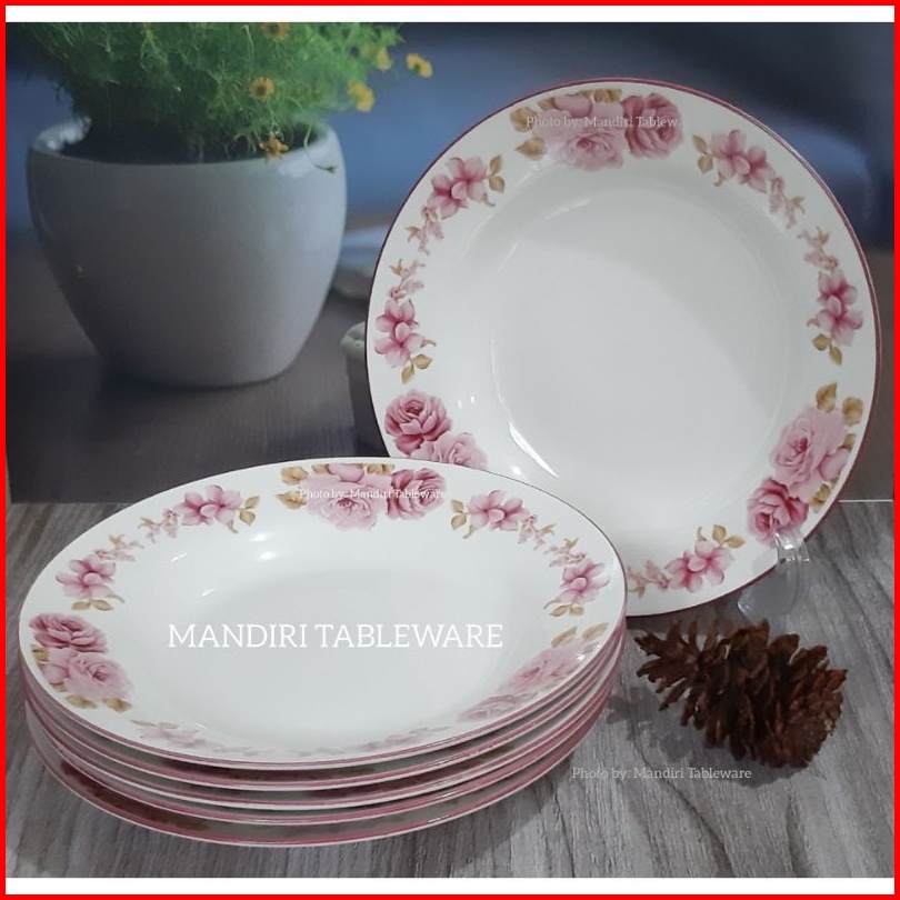 Best Seller Piring Makan Cekung Keramik 23 Cm Motif Pink Rose Premium Quality Isi 6 Pcs