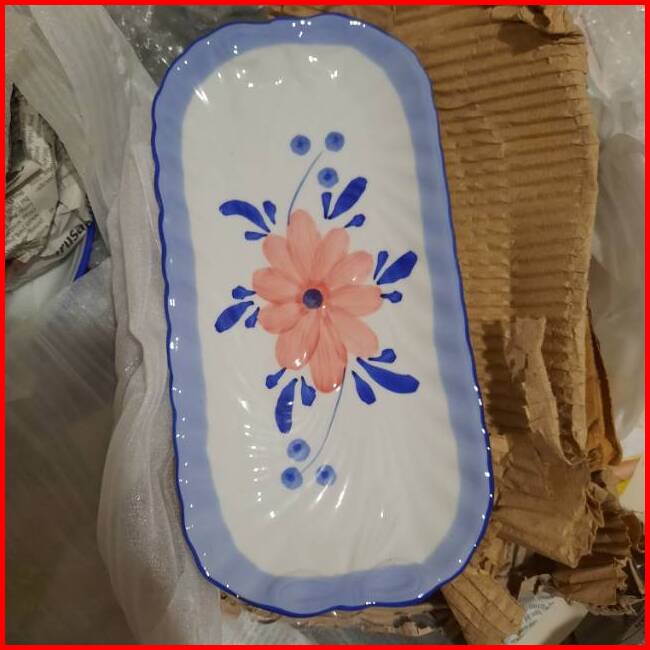 Piring Saji Keramik Bunga Persegi Panjang Kecil 14 X 27cm