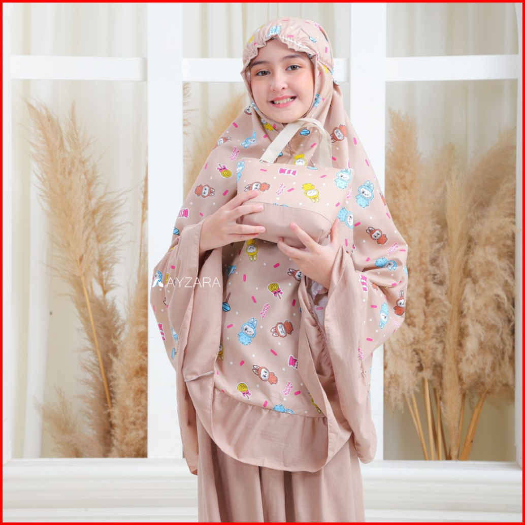 Ayzara - Mukena Anak Katun Motif Kombinasi Polos Tas Ransel Anak Tk Sd Tanggung Dania Series