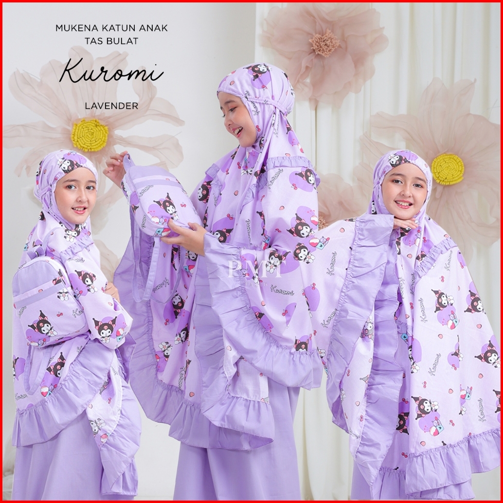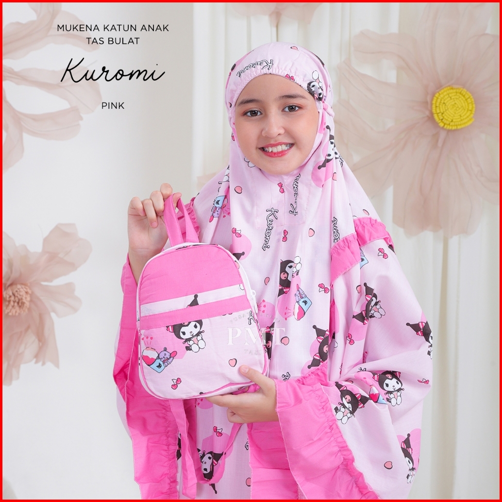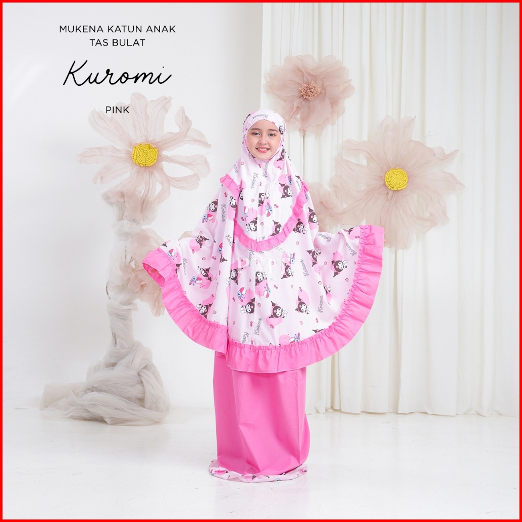 Pusat Mukena Tasik - Mukena Katun Anak Tas Bulat Kuromi Kuromi Rayon 2in1