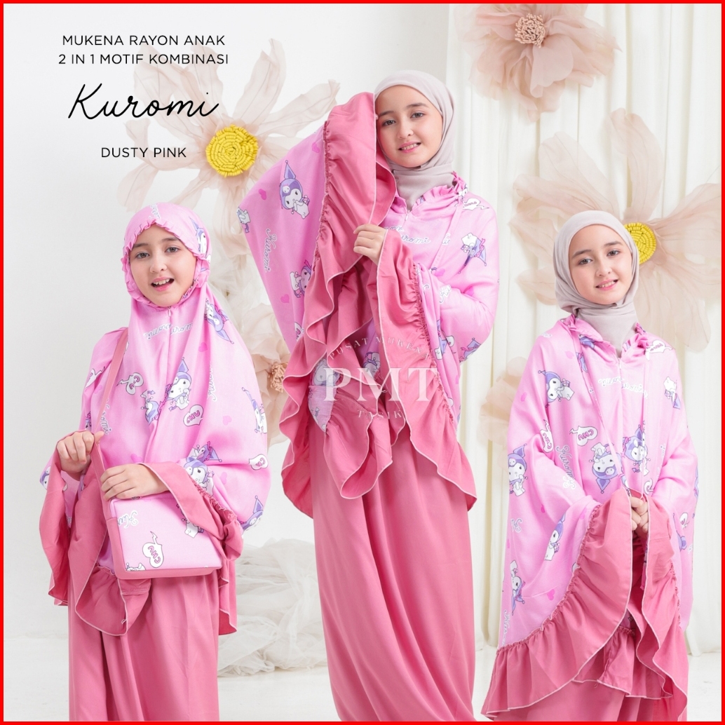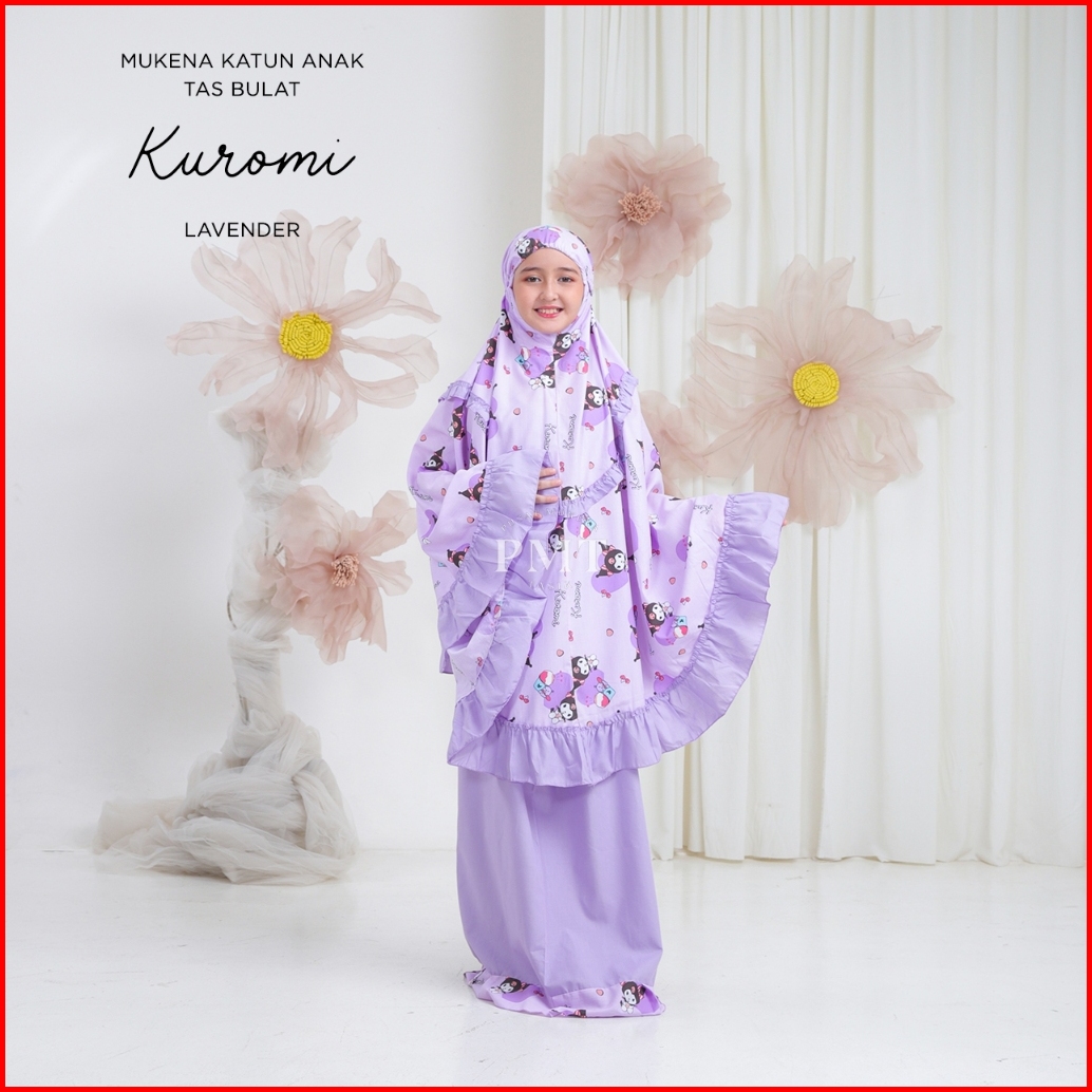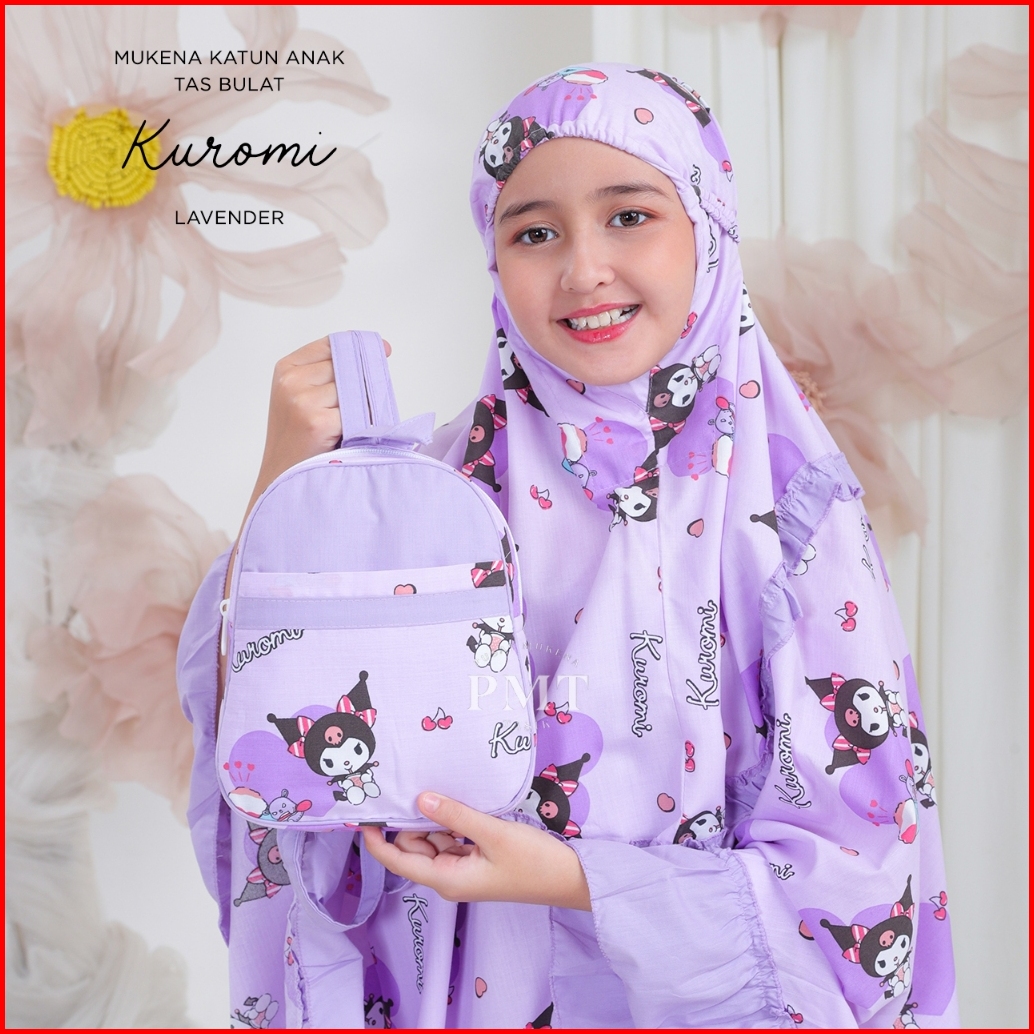Pusat Mukena Tasik - Mukena Katun Anak Tas Bulat Kuromi Kuromi Rayon 2in1