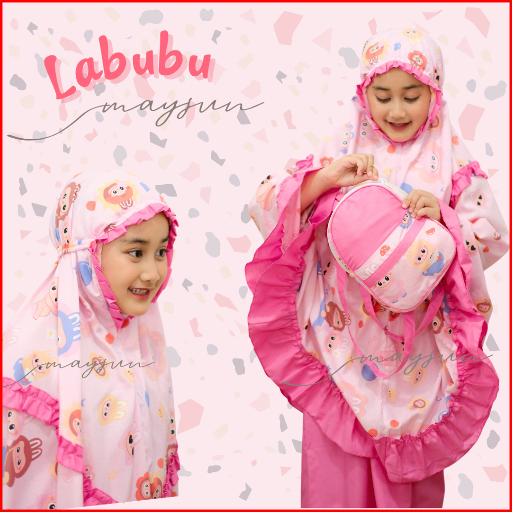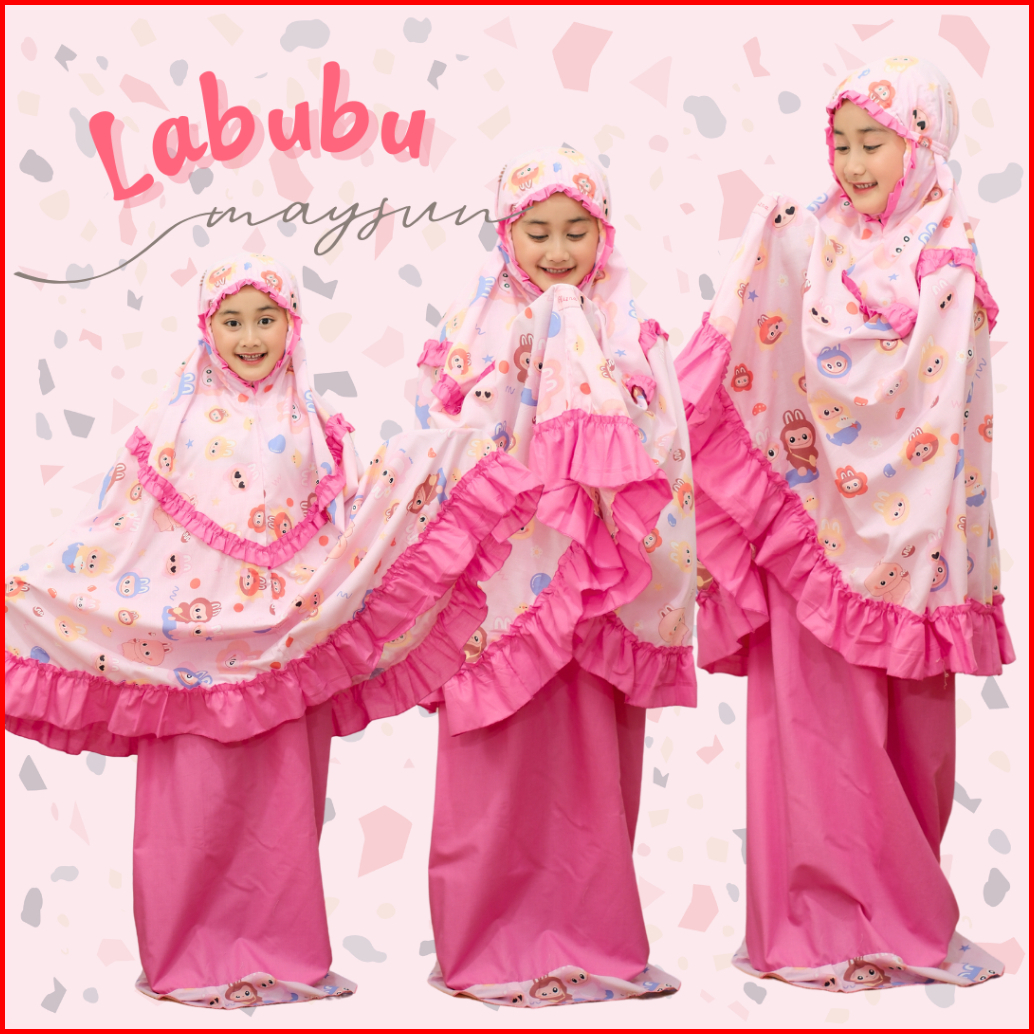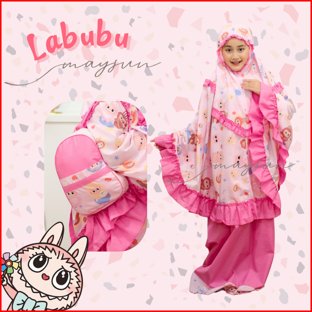 Mukena Anak Karakter Labubu 3in1 Free Tas Ransel Dan Sajadah Muka