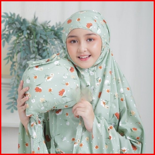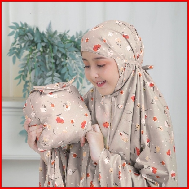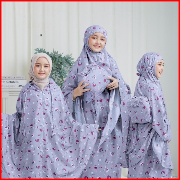 Mukena Anak Perempuan Tas Ransel 2in1 Resleting Dagu Katun Motif Premium