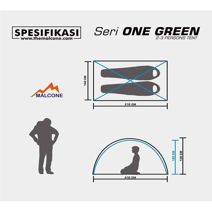 Tenda dome 2-3P double layer One Green Malcone (Lengkap / komplit)