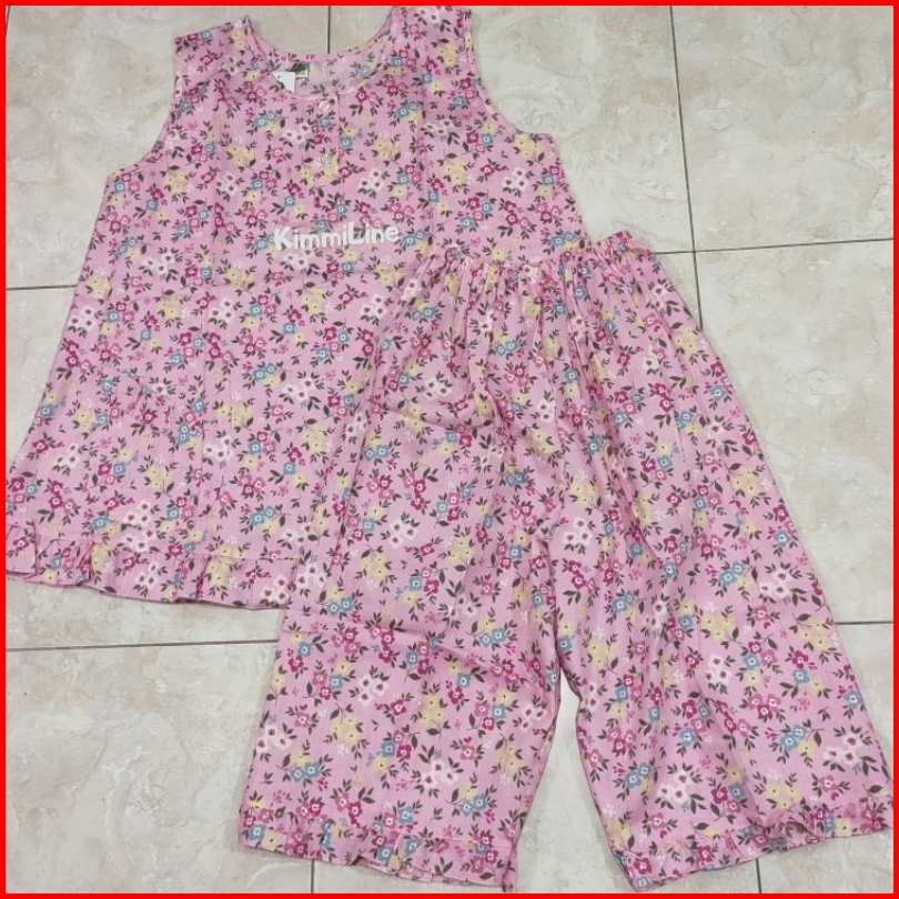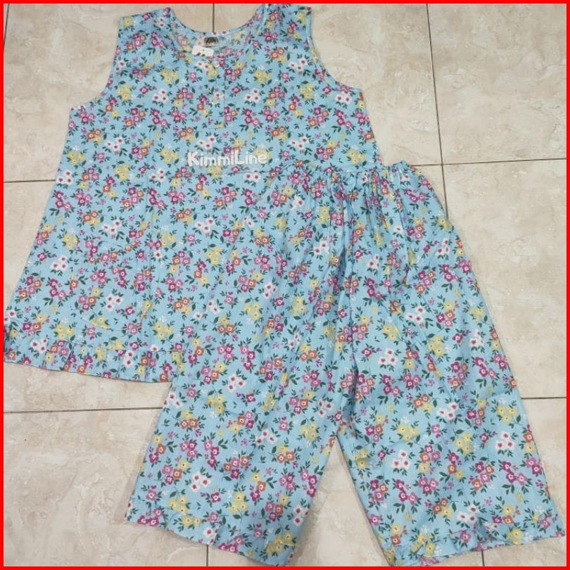 Setelan Baju Tidur Merlin Bahan Katun Bd Ycs Celana 3 4 Babydoll Tanpa Lengan Size Dewasa Motif Flower