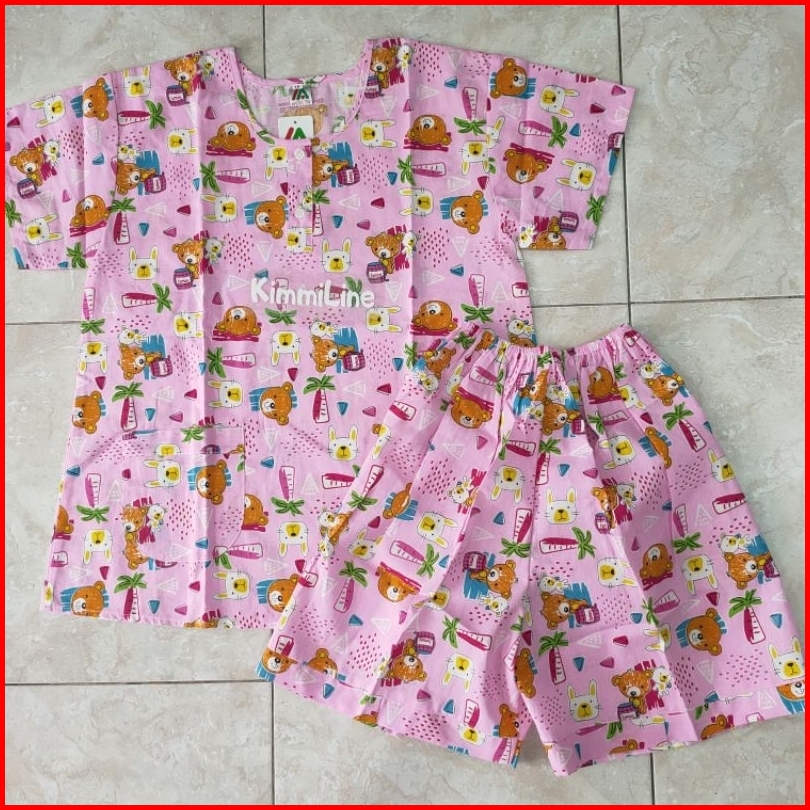 Baju Tidur Merlin Bahan Katun Setelan Abg Hp Remaja Celana Pendek Hotpants Motif Boneka Bear Pantai