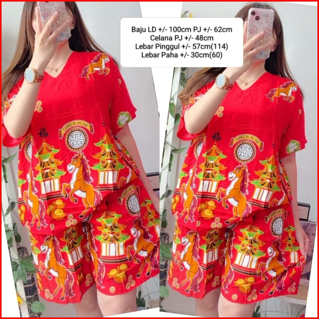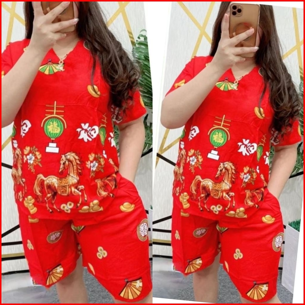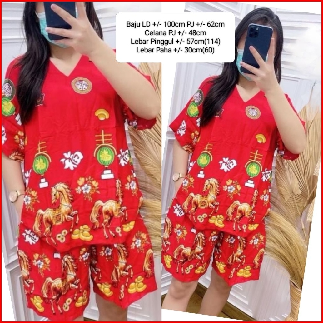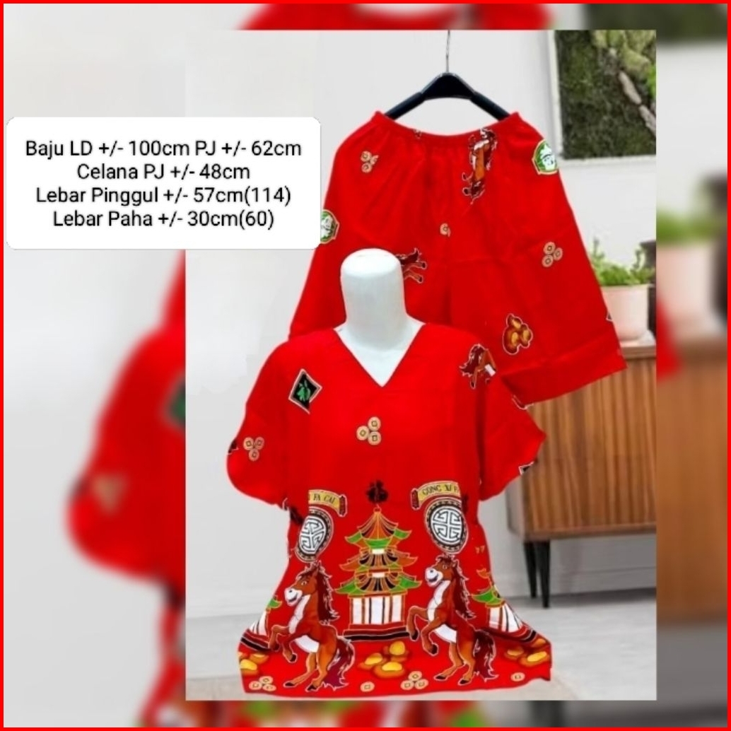 Ld100 Baju Tidur Piyama Lehar V Rayon Imlek Shio Kuda Horse 2026