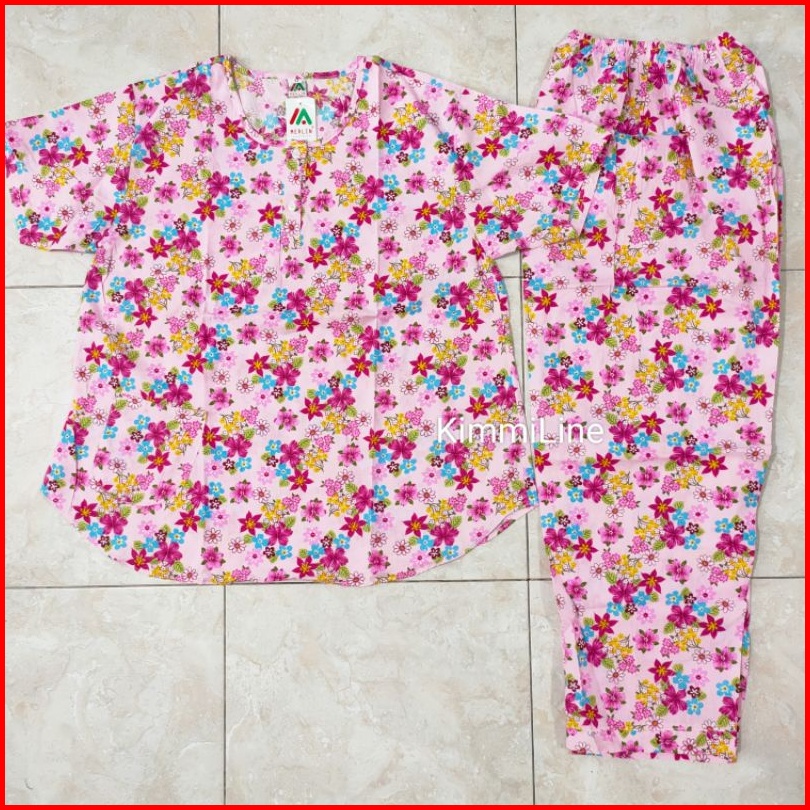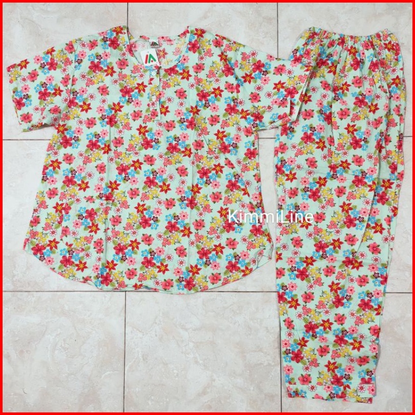Setelan Baju Tidur Katun Merlin Size Dewasa Jumbo Cp Xl Celana Panjang Motif Flower