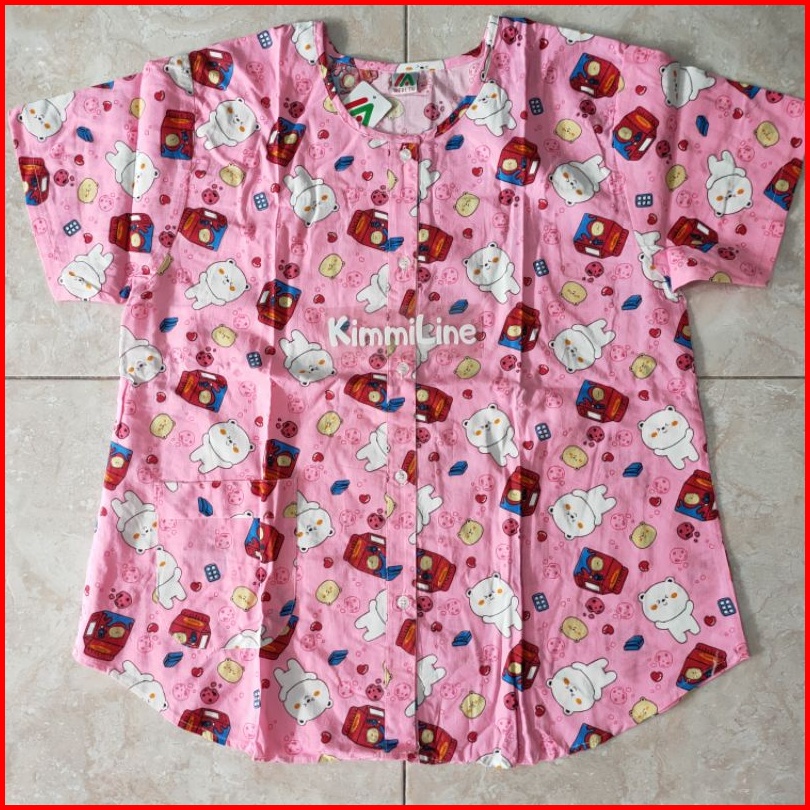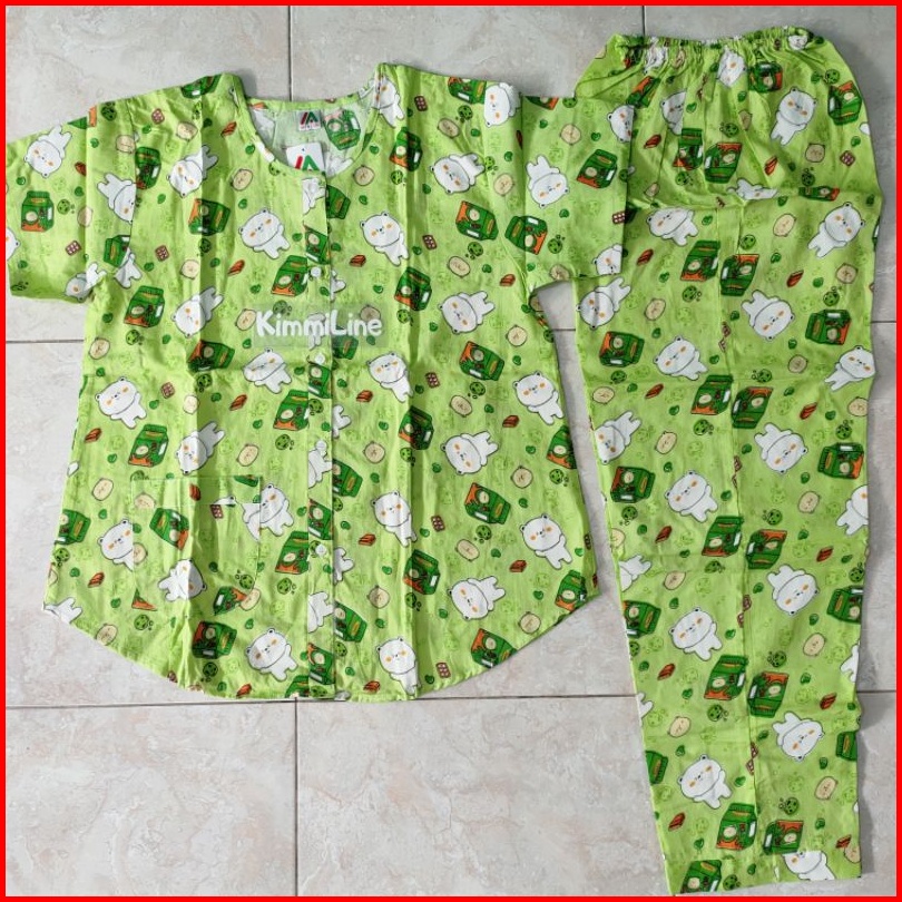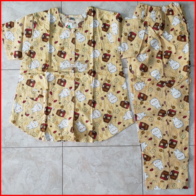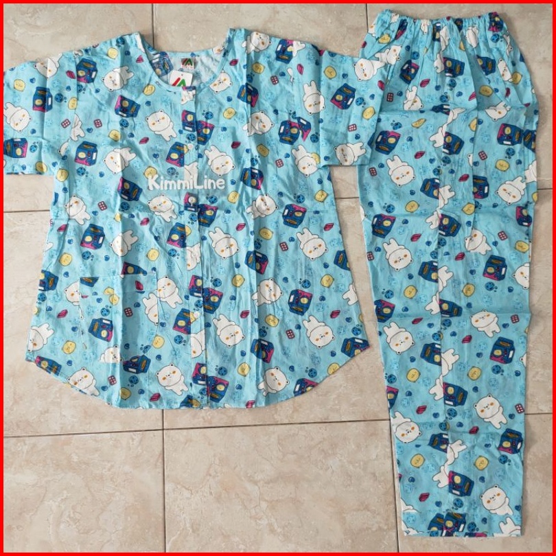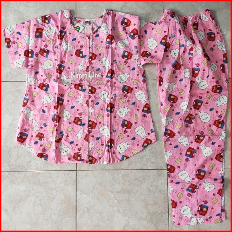 Setelan Baju Tidur Bahan Katun Merlin Cp Dewasa Kancing 5 Full Celana Panjang Tangan Pendek Motif Milky Bear