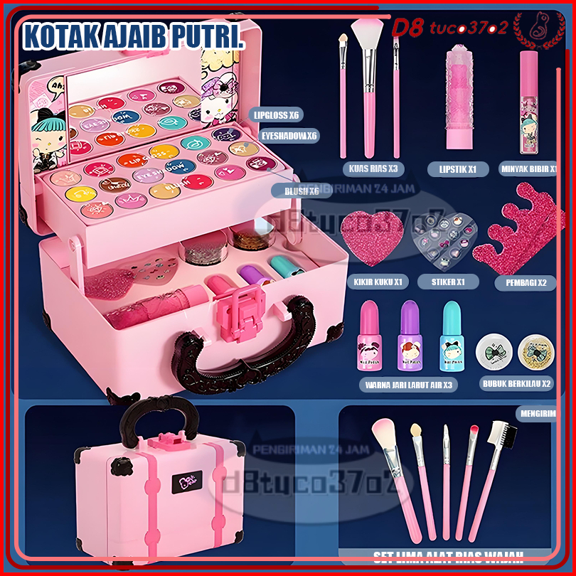 32pcs Mainan Kosmetik Kecantikan Anak Kasus Peralatan Kotak Girls Makeup Toys Princess Makeup Tas