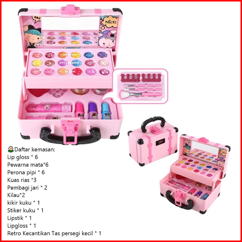 Ready Stock32pcs Girls Makeup Toys Kosmetik Kotak Bermain Princess Makeup Girl Toy Play Set Lipstik Eye Shadow Safety Ki