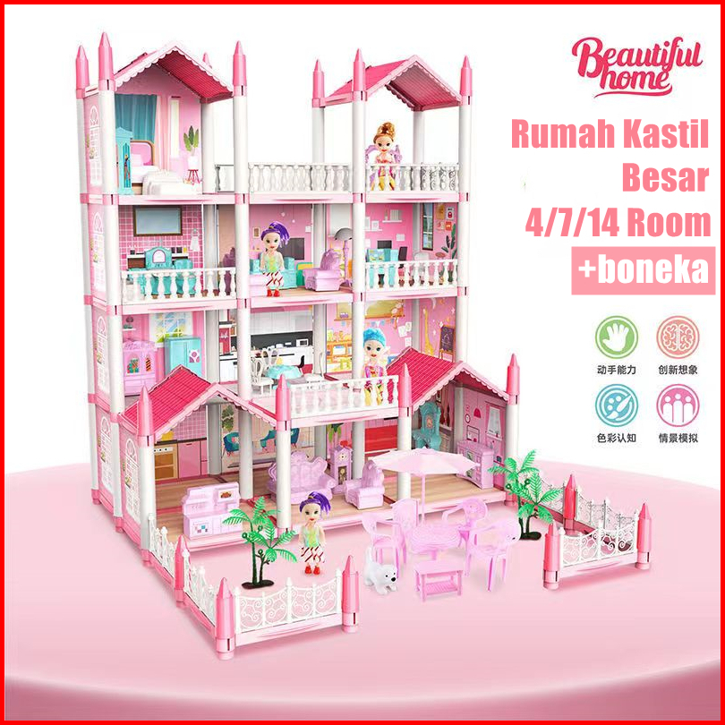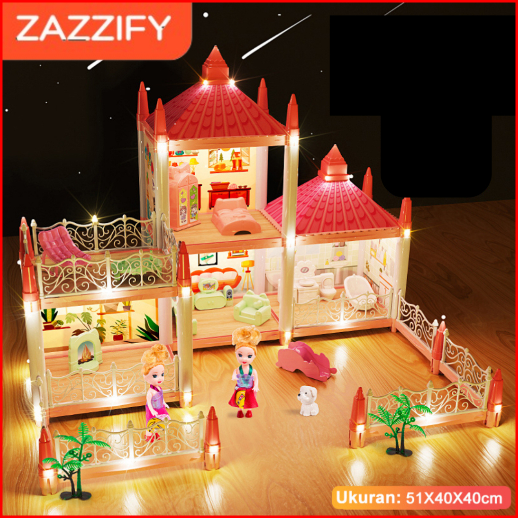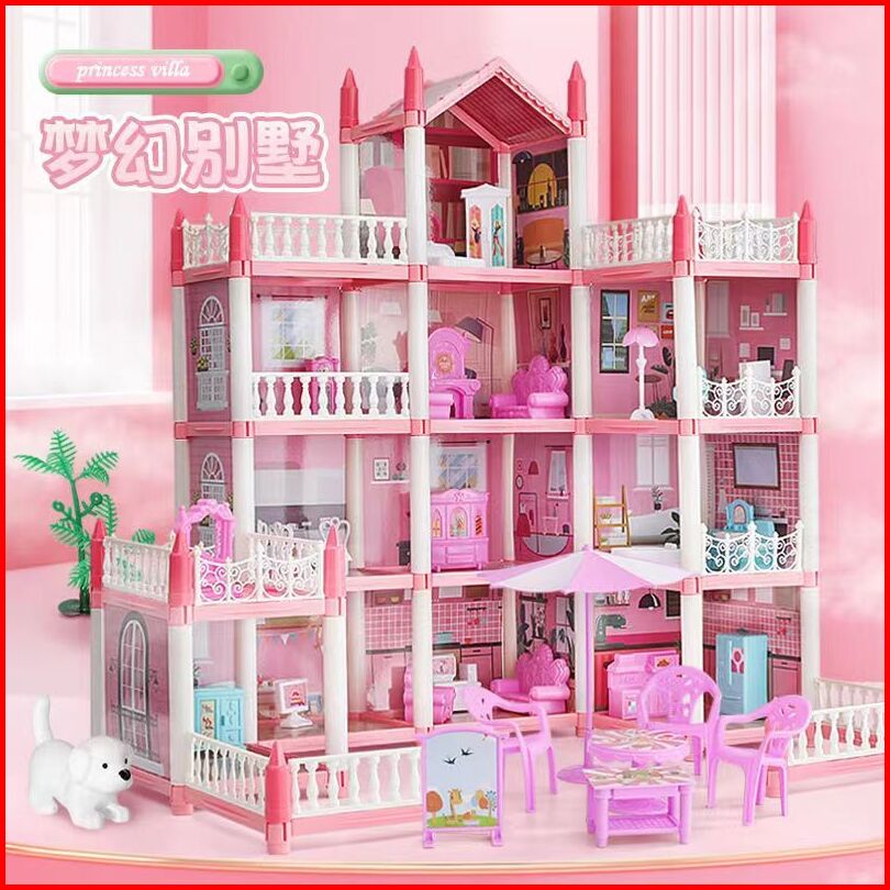 Mainan Rumah Boneka Besar Big Doll House Princess Dream Castle Villa Diy Dream House Mainan Anak Perempuan Mainan Peran