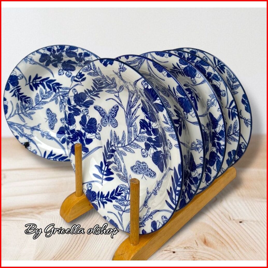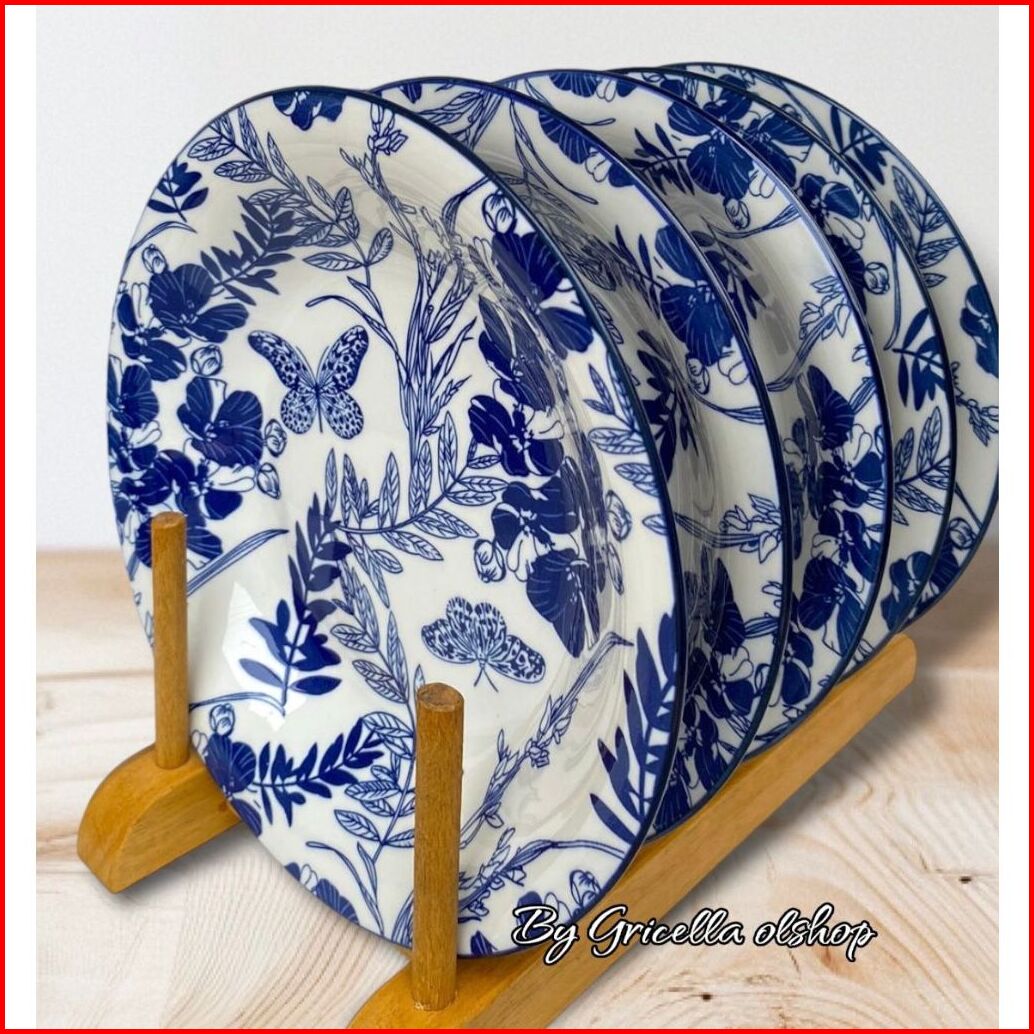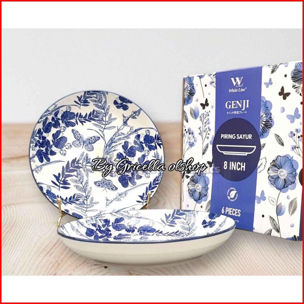 3 Pcs Piring Makan Keramik Genji Diameter 9 25 Inchi Terlaris White Line