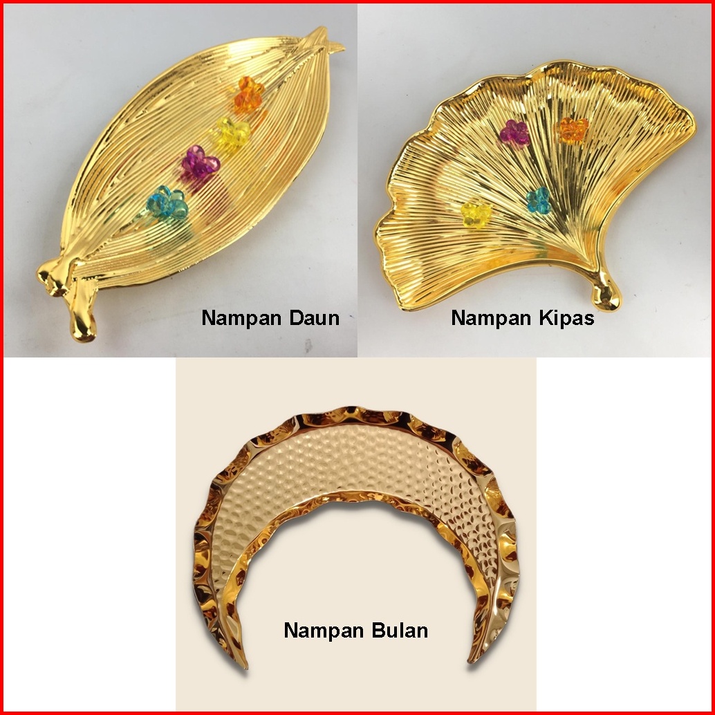 Nampan Piring Hias Saji Model Kipas Daun Bahan Logam Uk29x11cm 26x21cm