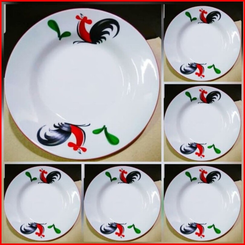 1 Set Isi 6 Pcs Piring Ayam Jago-piring Makan-piring Jadul