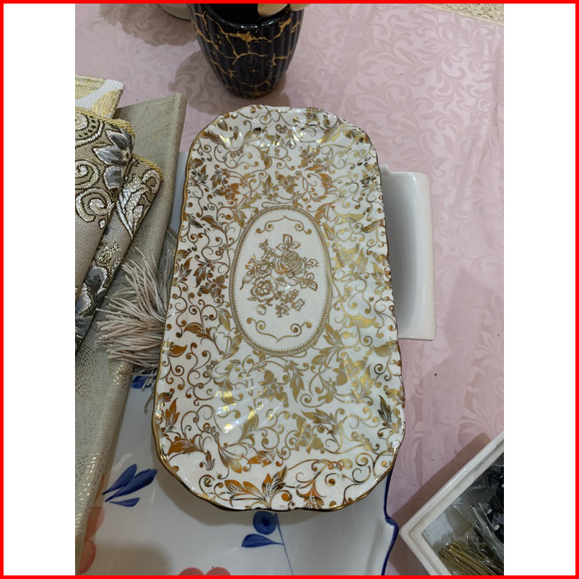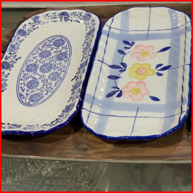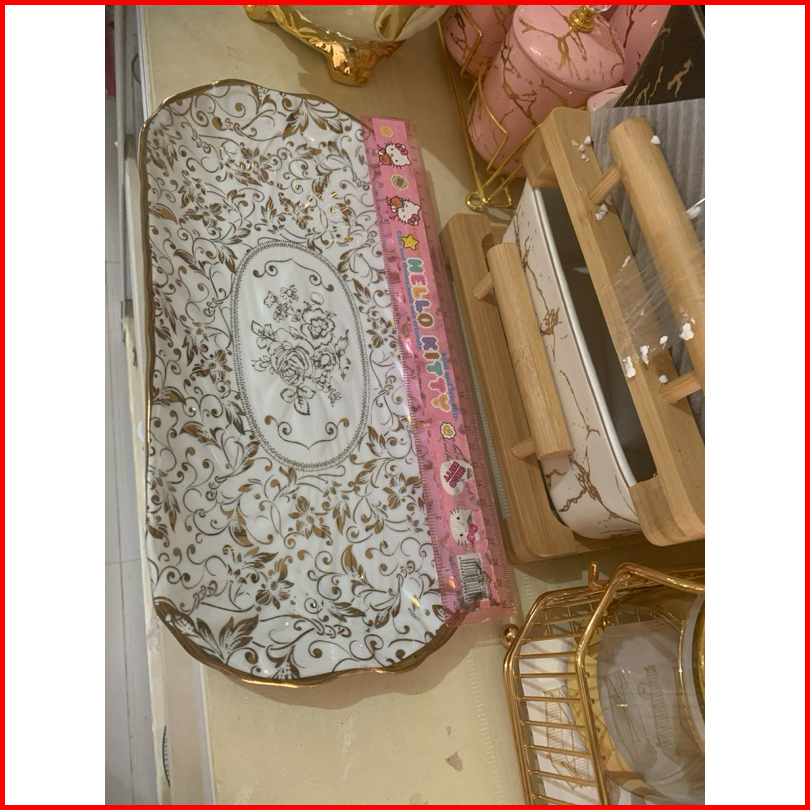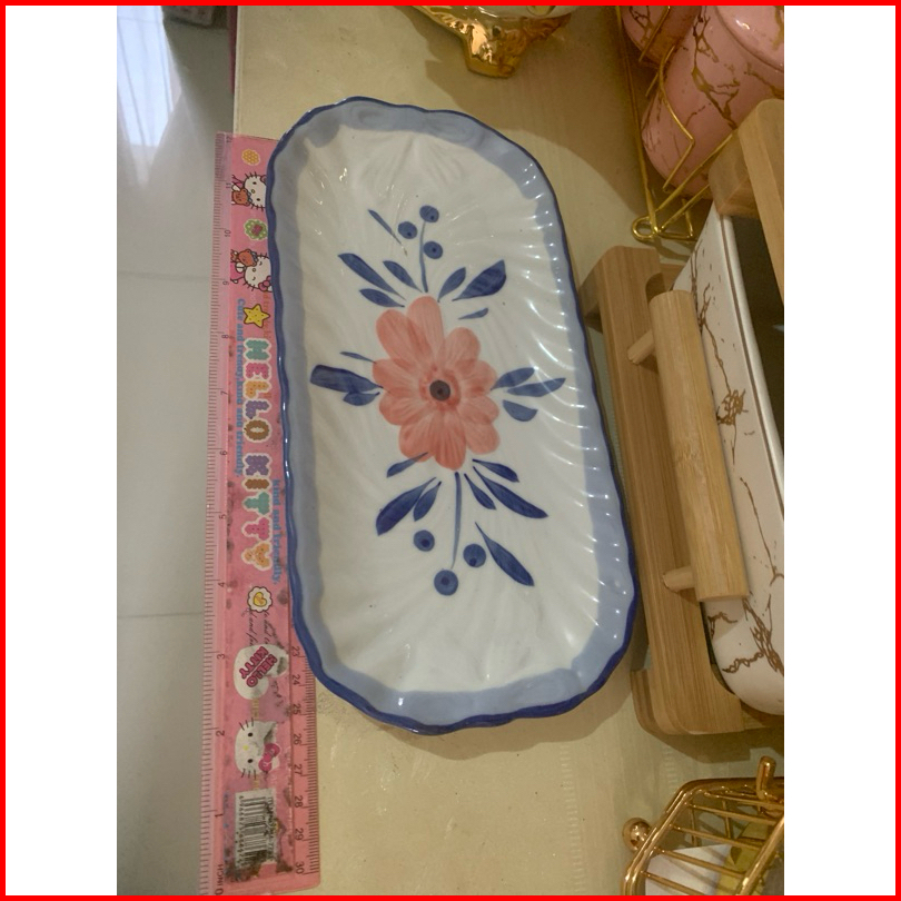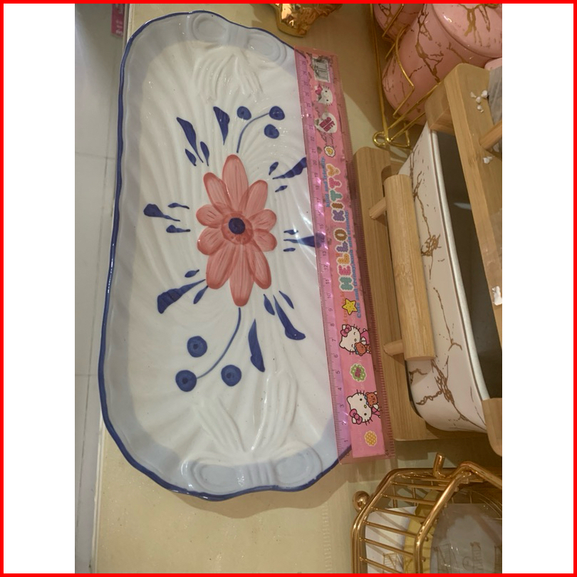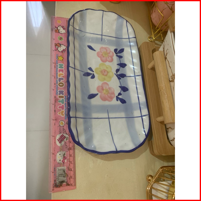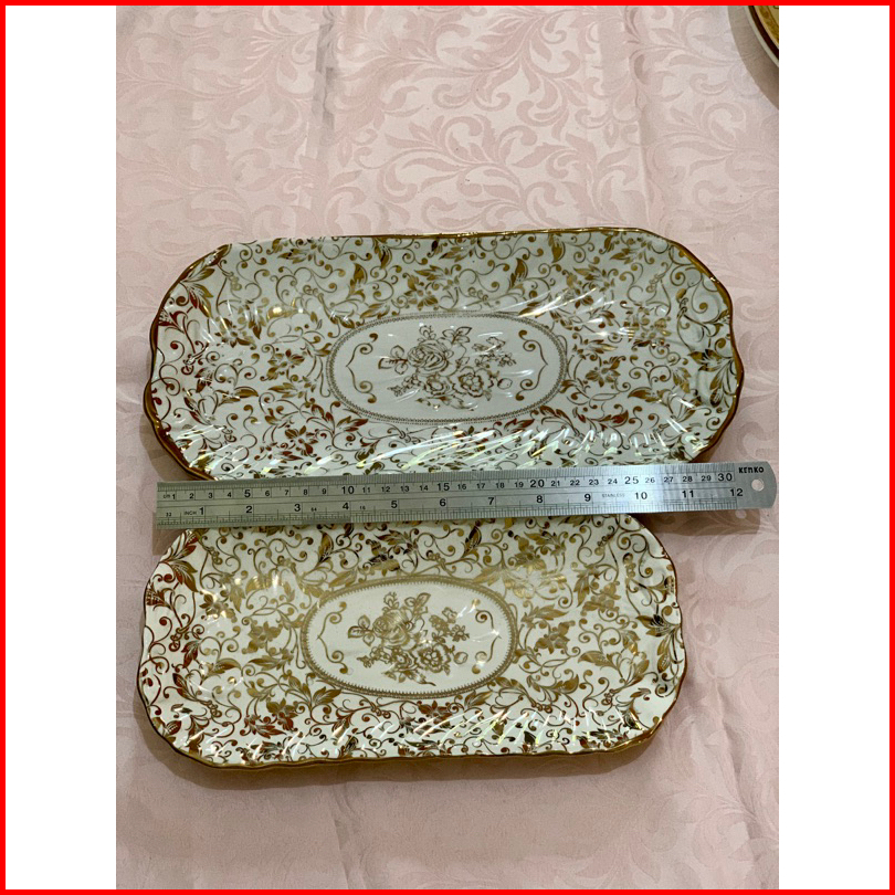 2 Pc Piring Kue Persegi Panjang Keramik Impor