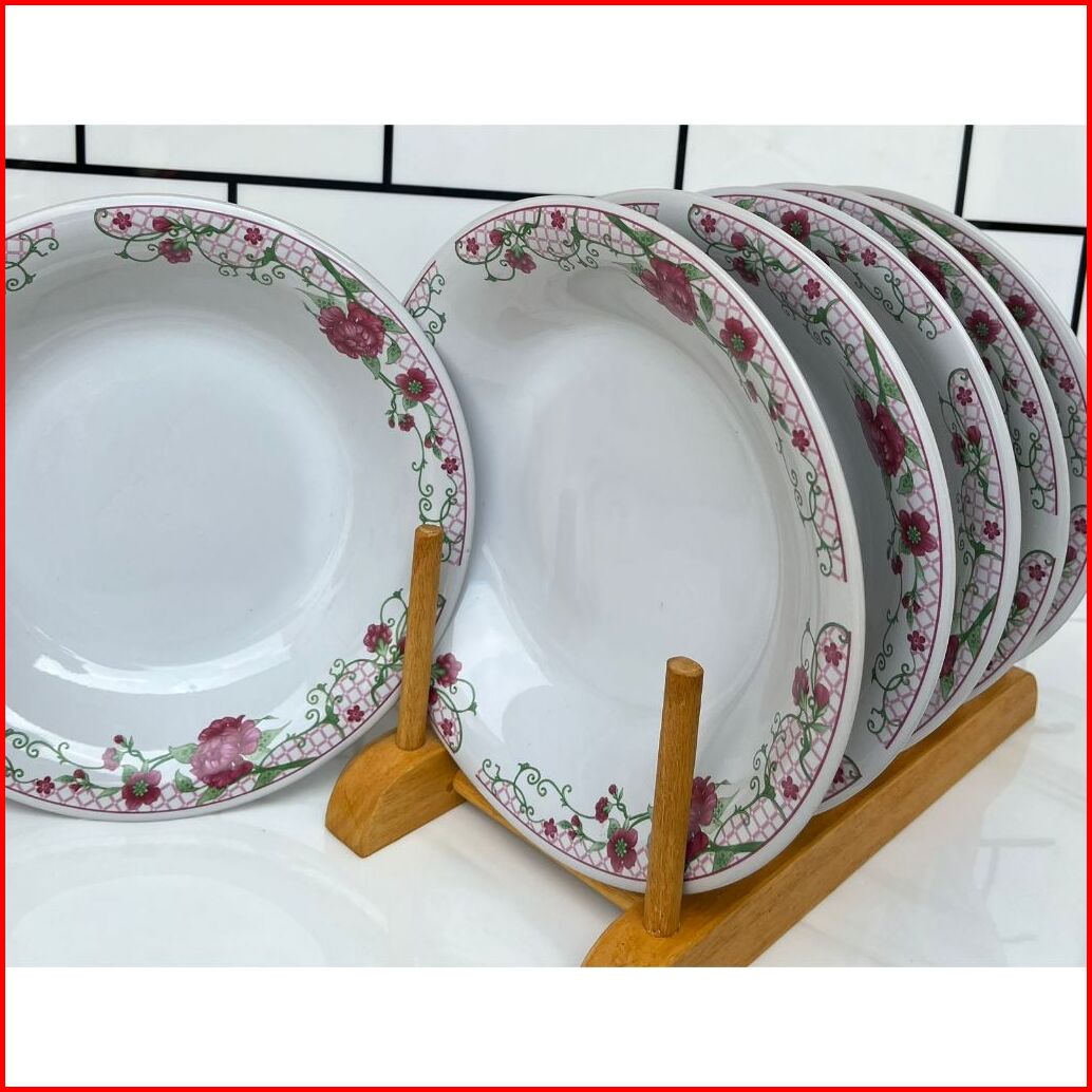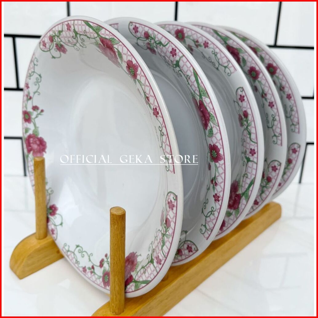 Piring Makan Keramik Lucky Lis Kembang Merah Diameter 9 Inchi 23 Cm
