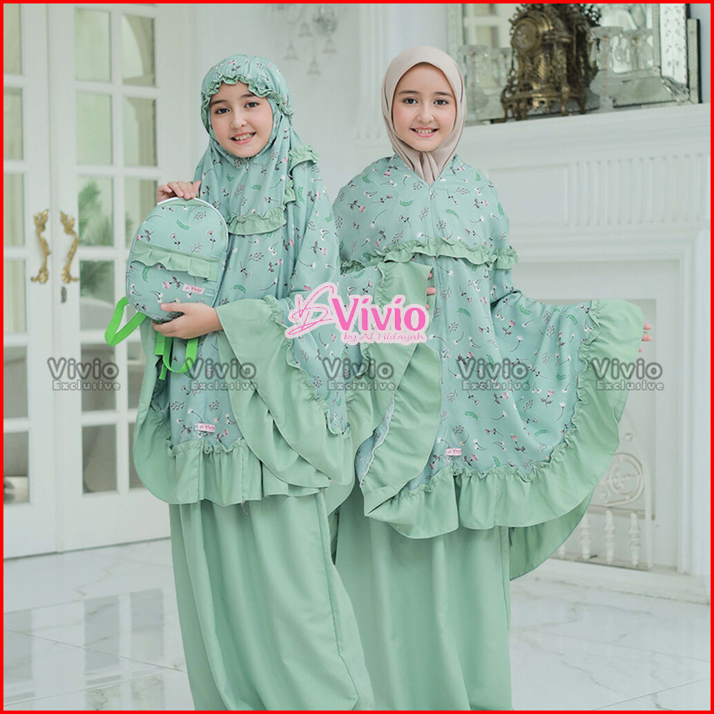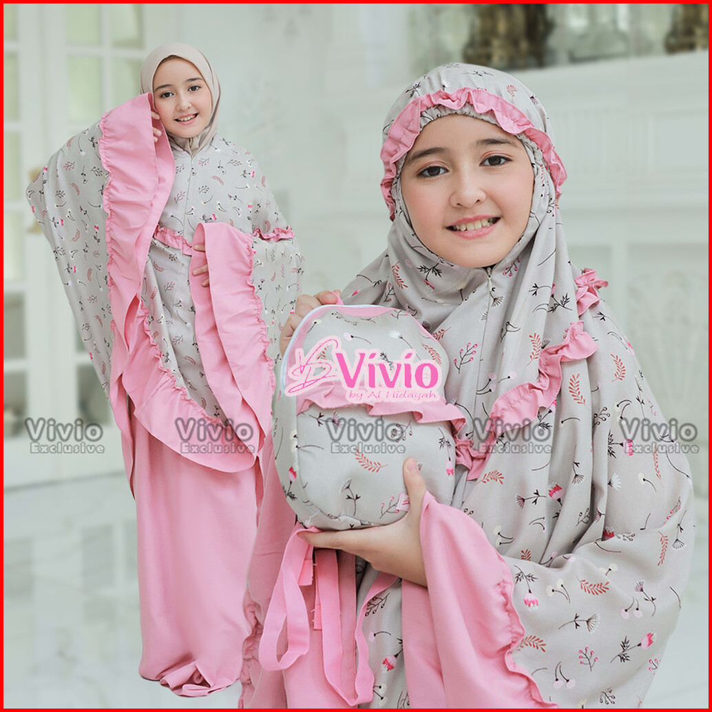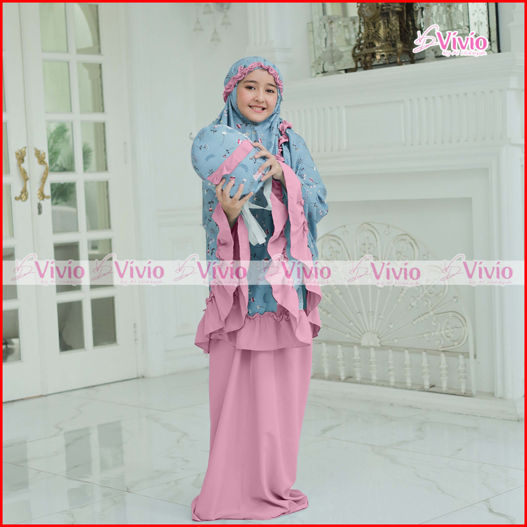Mukena Anak Tas Ransel Resleting Dagu Rayon Premium Motif 2 In 1 Tk Sd Tanggung Remaja