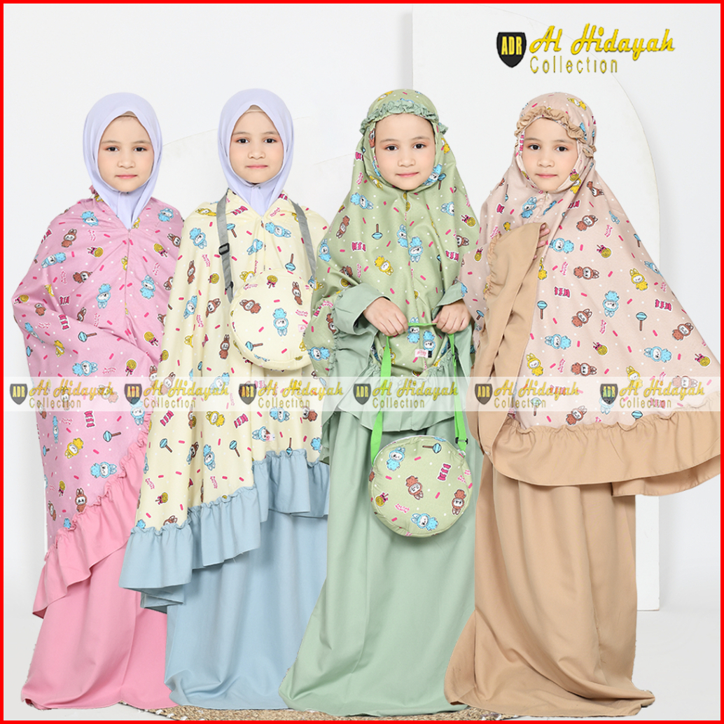Mukena Anak Resleting Dagu 2 In 1 Katun Premium Motif Bunga Umur 3 4 5 6 7 8 9 10 11 12 13 14 15 Tahun Mukenah Tanggung