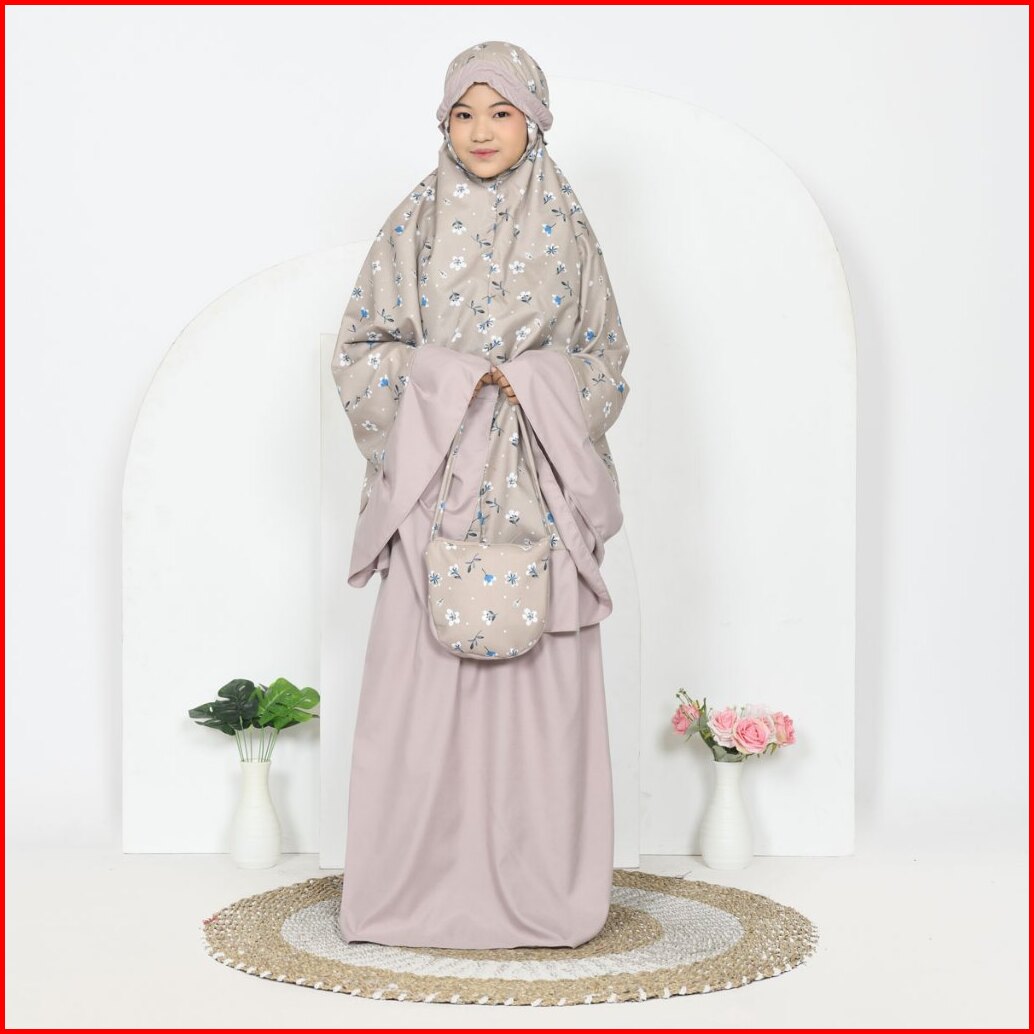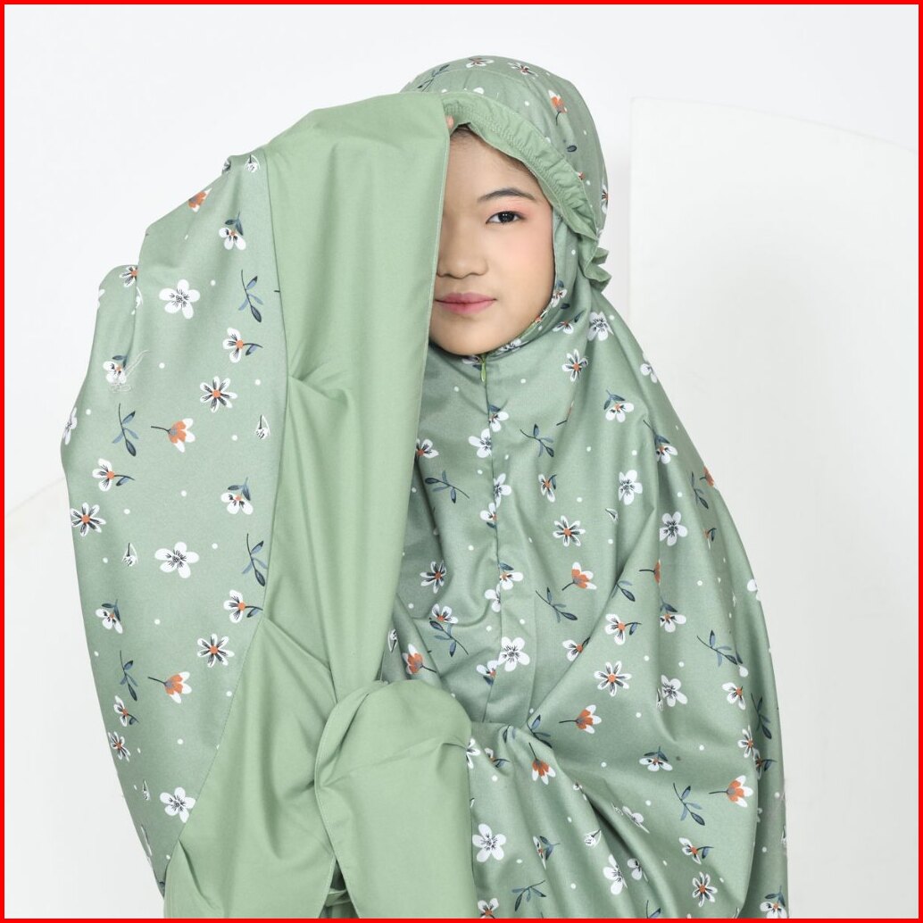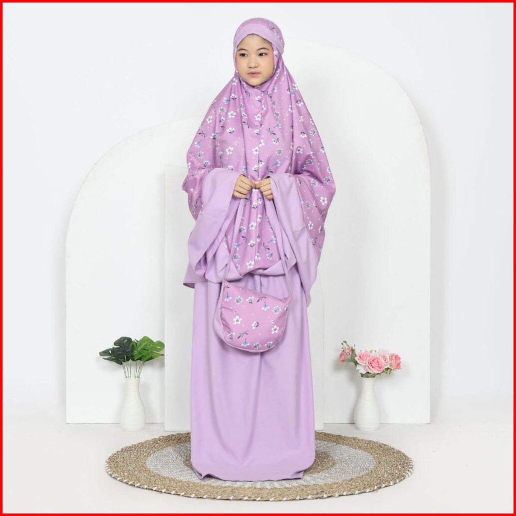 Faisal - Mukena Anak Perempuan Resleting 2in1 Usia 6-12 Tahun Katun Motif Kombinasi Polos