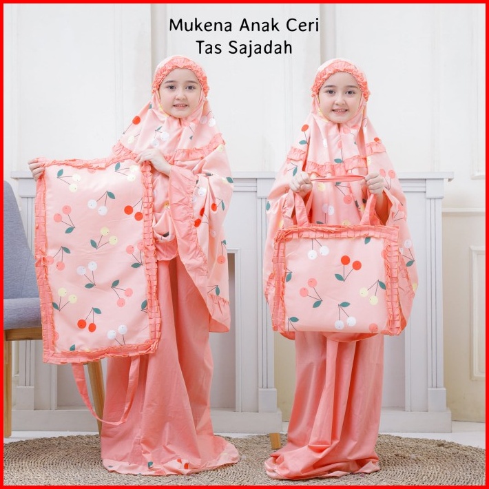 Mukena Anak Katun Ceri Salem Tas Sajadah